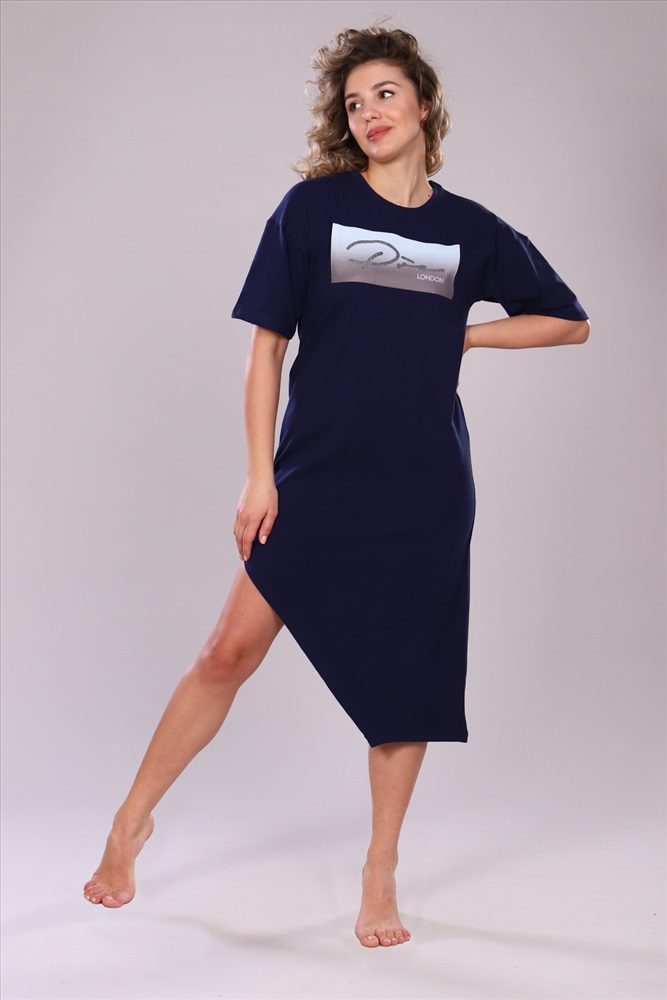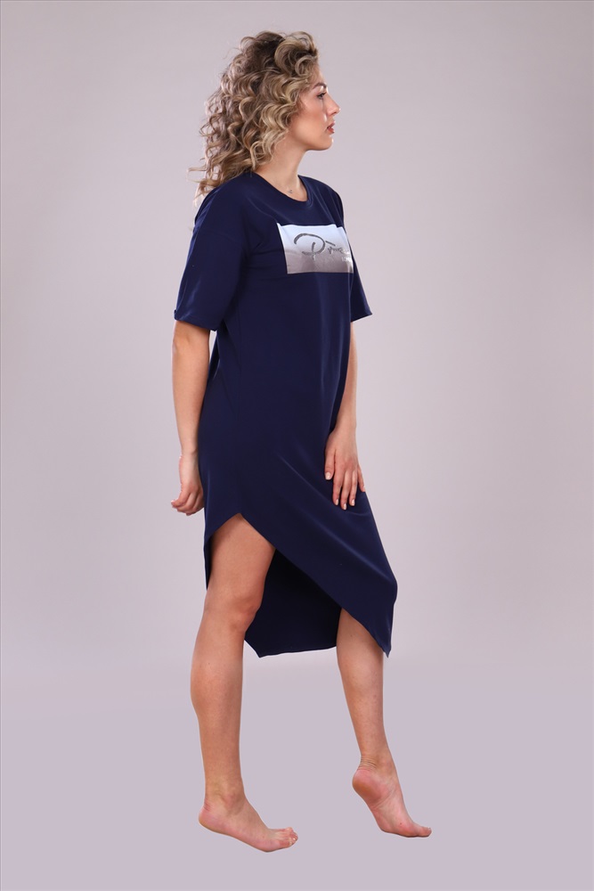 Застежка: без застежки Стильная футболка свободного кроя. Рукав втачной, на полочке декоративная, глянцевая печать в стиле шелкографии с добавлением глиттера.
