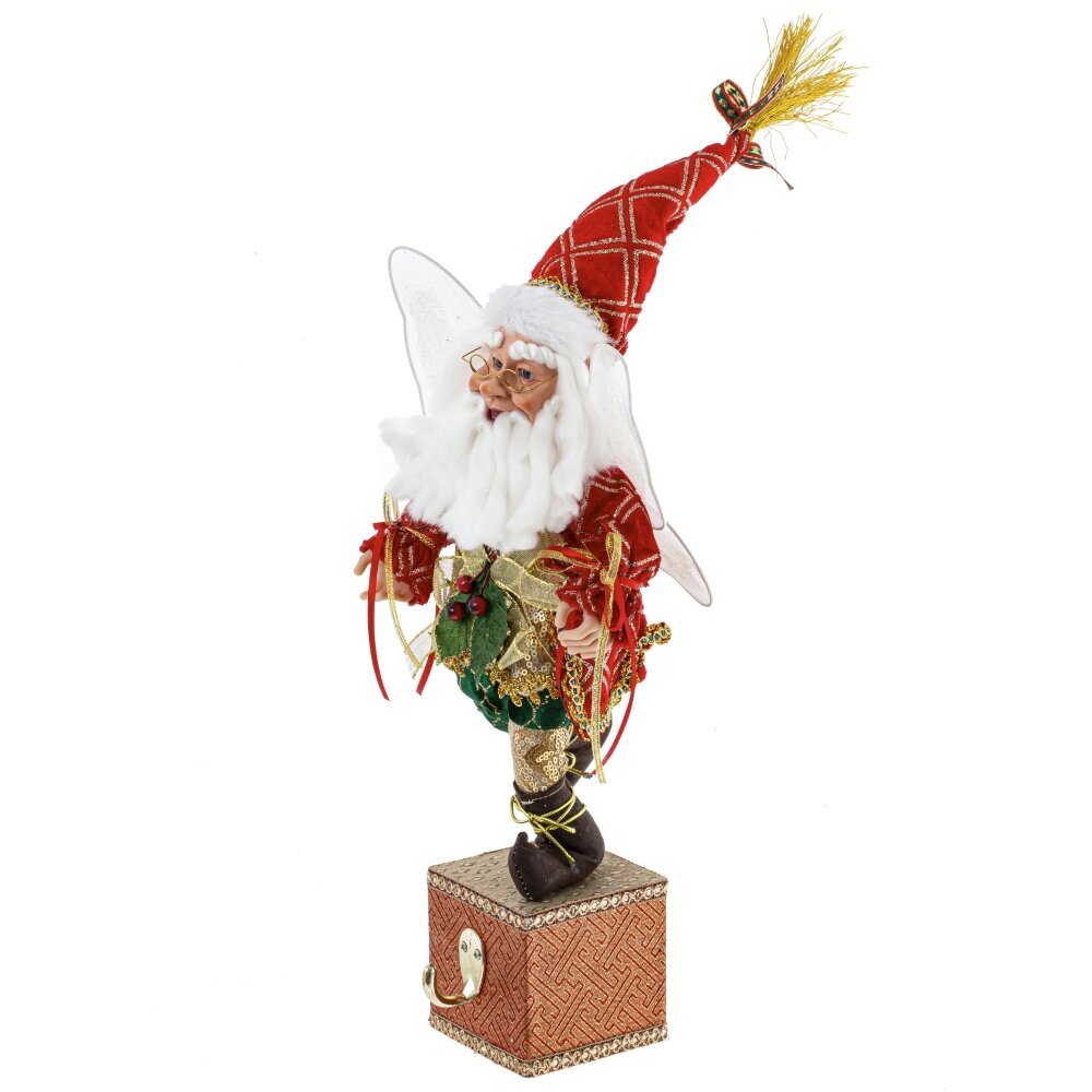 Бренд: GAEM; Категория: Дед Мороз и Снегурочка, Новогодние фигурки, Новый год!; Серия: 2730; Материал: Полимерные материалы/Текстиль/Дерево; Цвет: Красный; Коллекция: Новогодний декор "Рождество"; Упаковка: Картон, Пакет; Штук в коробе: 12; Штук в блоке: 1 Декоративная игрушка "Дед Мороз-эльф" - прекрасное дополнение к новогоднему интерьеру. Этот персонаж выглядит как эльф с крылышками в красном костюме Санты с колпаком, стоящий на подставке с крючком для подвешивания носка. Реалистичные лицо и руки, выполненные из полимерных материалов, придают особый шарм этой игрушке. Он наполняет пространство таинственным и праздничным настроением.