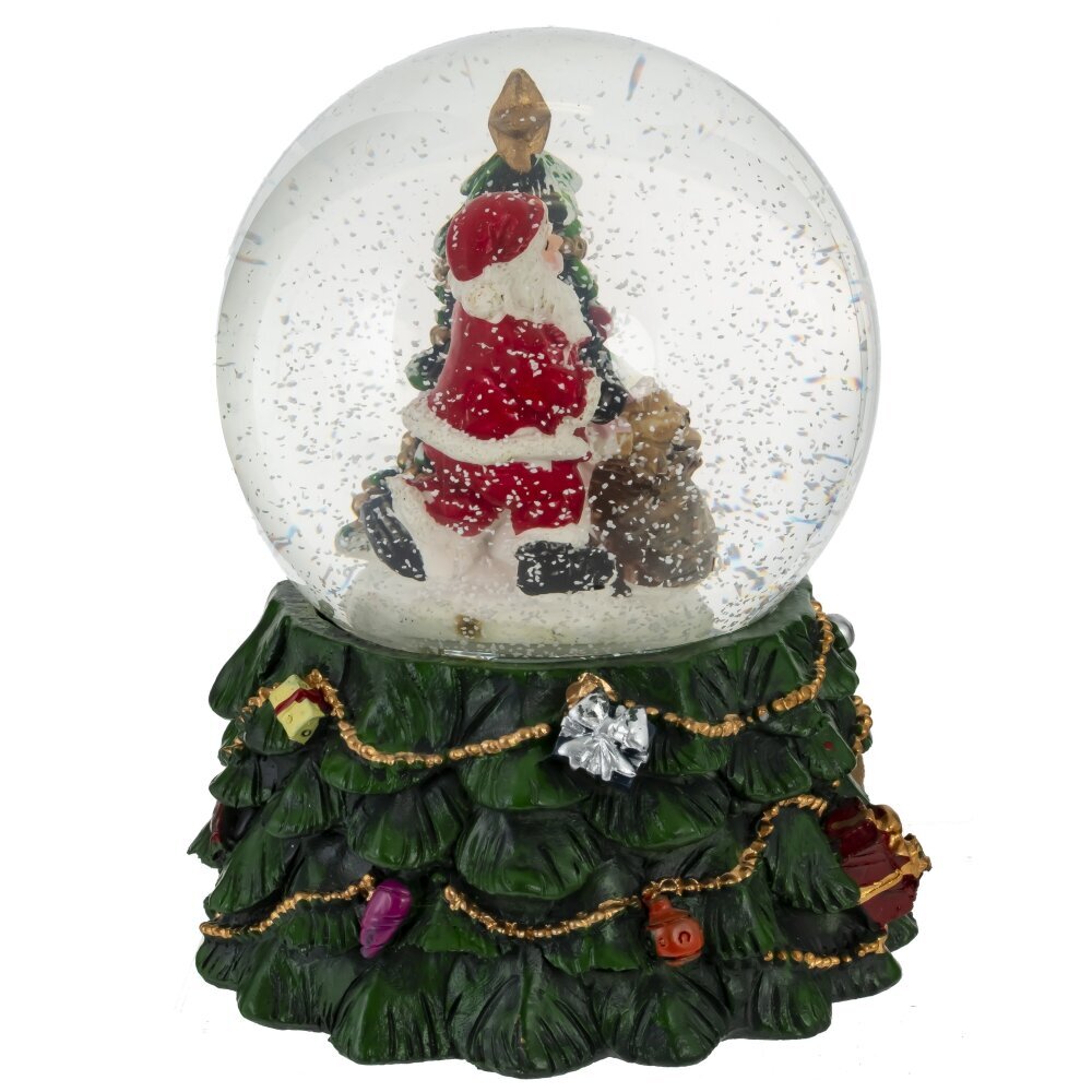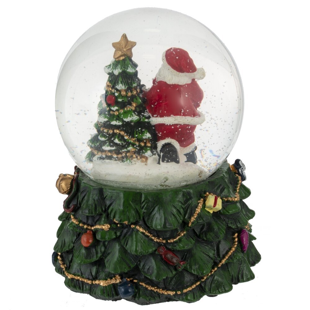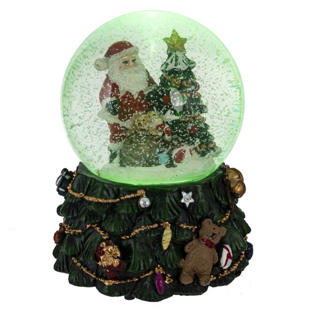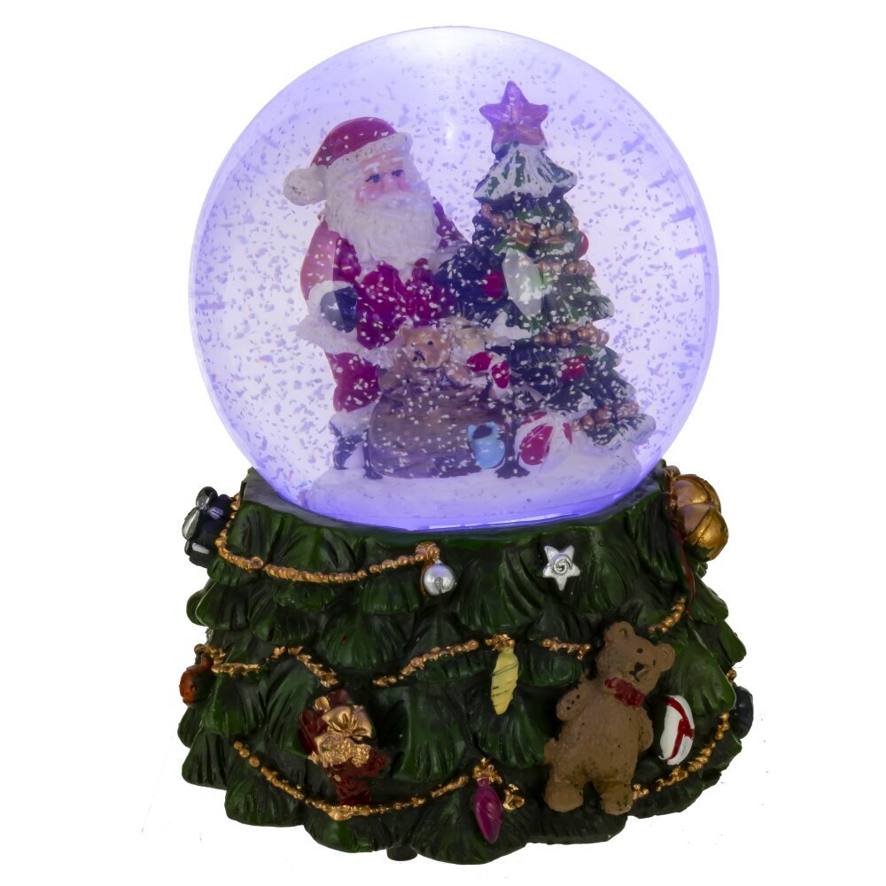 Декоративный новогодний сувенир "Дед Мороз" в стеклянном шаре - это волшебное сочетание красоты и праздничного настроения! Подставка из полимерного материала в виде новогодней ели добавляет оригинальности этому сувениру. Внутри стеклянного шара диаметром 10 см находится фигурка Деда Мороза с подарками возле елки. Рычаг на дне подставки запускает цветную подсветку, вьюгу из мелких белых хлопьев и восемь новогодних мелодий, создавая атмосферу праздника. Сувенир имеет два режима работы: с музыкой и без. Для работы необходимы три батарейки типа AAAх3, которые не входят в комплект. Погрузитесь в волшебство праздника с этим уникальным сувениром!