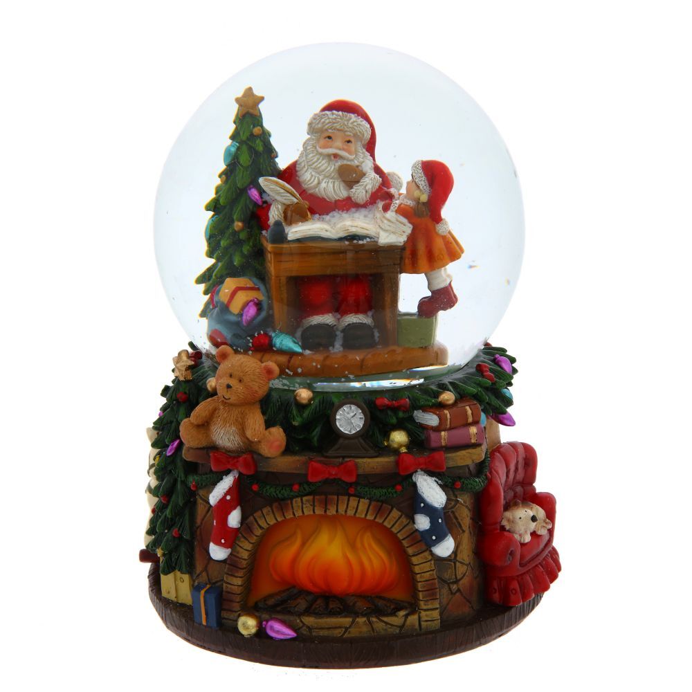 Фигурка декоративная "Дед Мороз" с музыкой и функцией движения. Размещена в стеклянном шаре диаметром 10 см. Шар заполнен водой с глиттером, фигурка и подставка изготовлены из полимерных материалов. Работает от трех батареек АА (не прилагаются), упаковка-коробка. Внимание: при длительном нахождении в минусовой температуре возможно образование льда, который сместит фигурку и повредит шар. Наличие воздушной прослойки внутри водяного шара является технической необходимостью производства.
