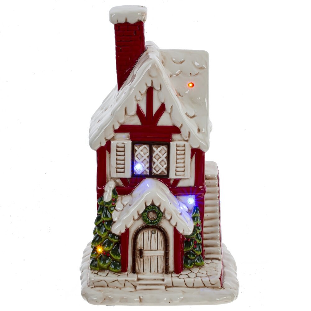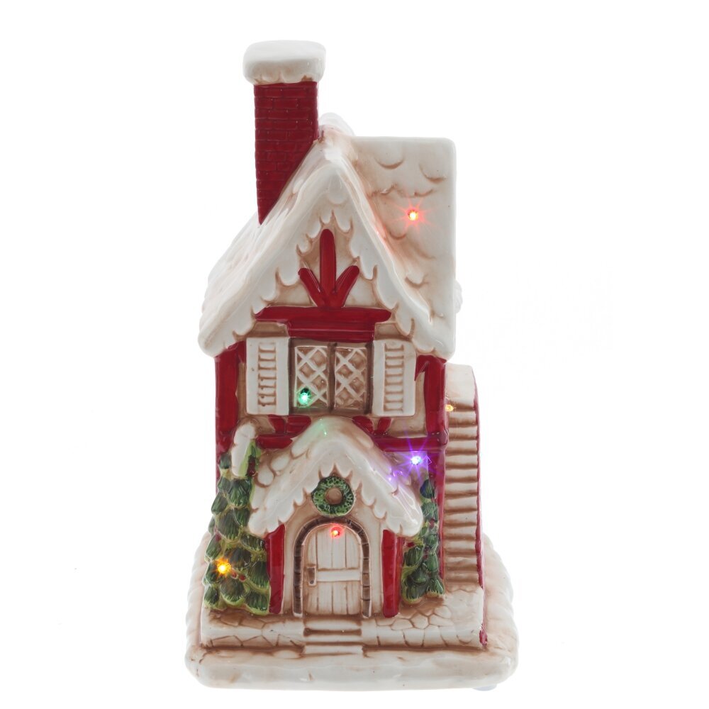 Эта очаровательная миниатюра станет прекрасным дополнением к вашему праздничному декору. Домик выполнен в классических новогодних цветах , украшен новогодним декором , что создает атмосферу волшебного Рождества. Встроенная подсветка, спрятанная в домике, создает мягкое и теплое свечение, которое делает его еще более уютным и привлекательным. В темное время суток, окна домика будут ярко гореть, напоминая о волшебстве праздника. Разместите фигурку на каминной полке, на праздничном столе или на полке с другими новогодними украшениями - она будет гармонично вписываться в любой интерьер и создавать атмосферу праздника.