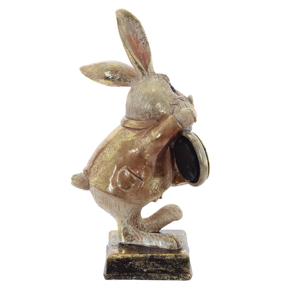 Фигурка Зайца с декоративными часами. Красота этого персонажа вне конкуренции. Его роскошный наряд притягивает, а воображение рисует удивительный сказочный дворец. Часы с римскими цифрами, работают от одной батарейки LR44 (не прилагается).