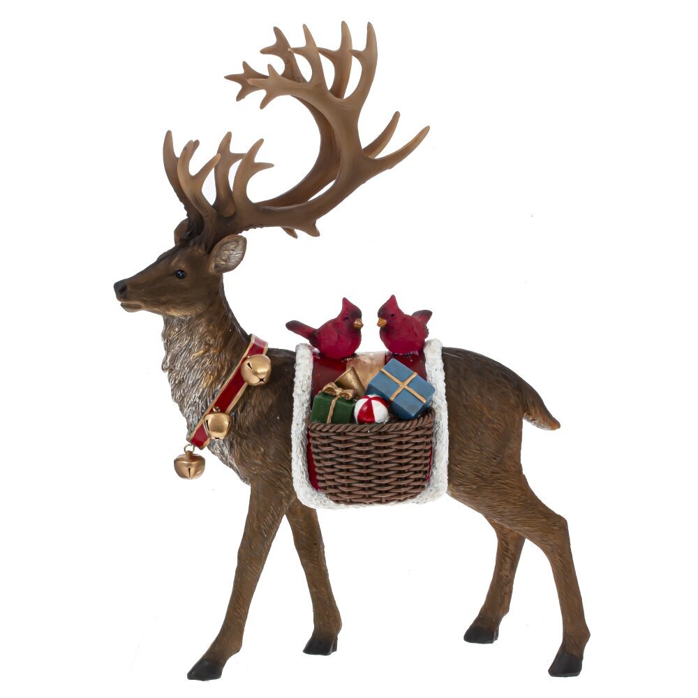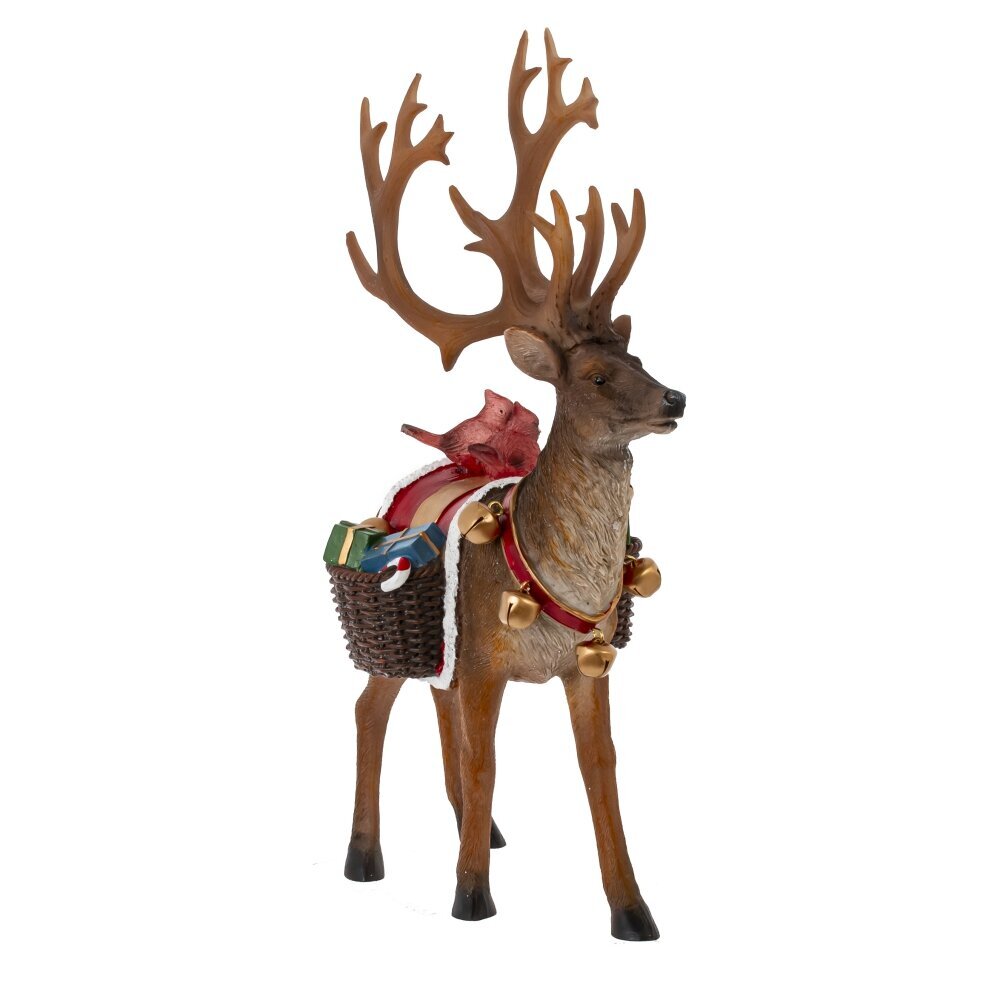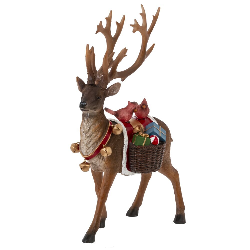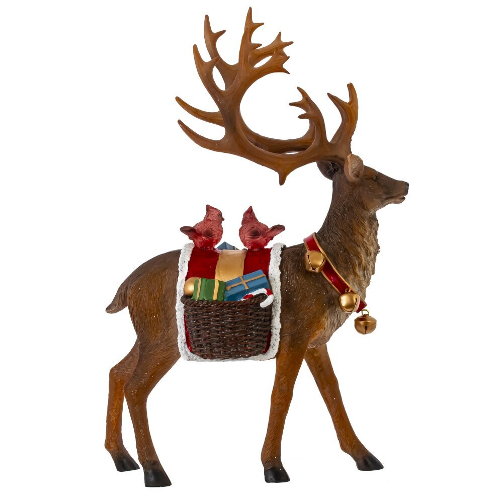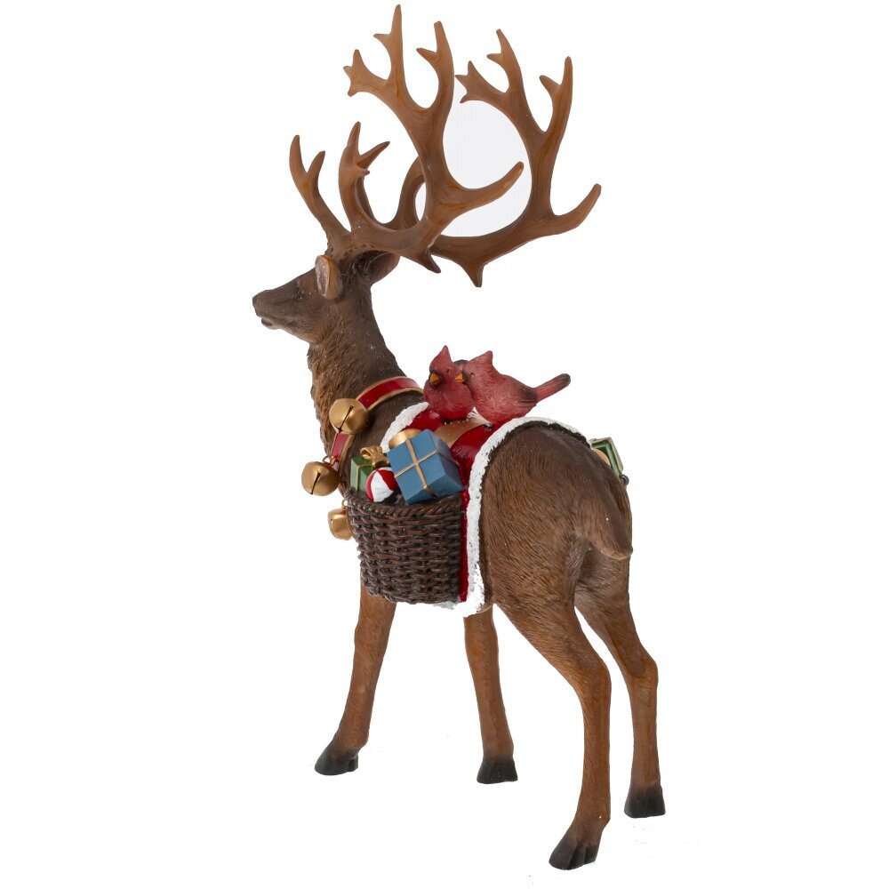 Фигурка декоративная "Олень" изготовлена из полимерного материала и отличается грациозным и реалистичным дизайном. Красивые большие рога добавляют оленю мощи и изящества. На шее хомут с бубенчиками добавляет праздничного шика. На спине - седло с подарками и двумя милыми птичками, которые подсвечиваются, создавая уютный свет. Подсветка работает от двух батареек типа AAA (не прилагаются). Эта новогодняя статуэтка станет идеальным акцентом в вашем интерьере, наполняя атмосферу теплом и радостью.