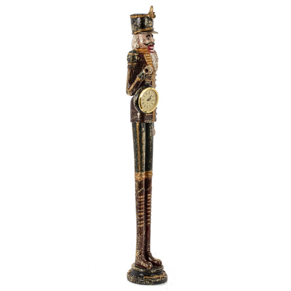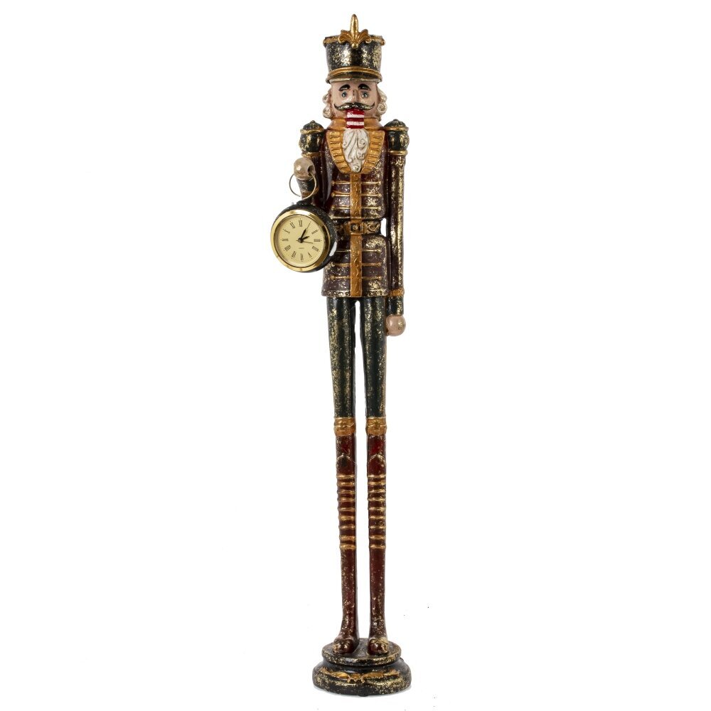 Фигурка Щелкунчика с декоративными часами. Красота этого персонажа вне конкуренции. Его роскошный наряд притягивает, а воображение рисует удивительный сказочный дворец.