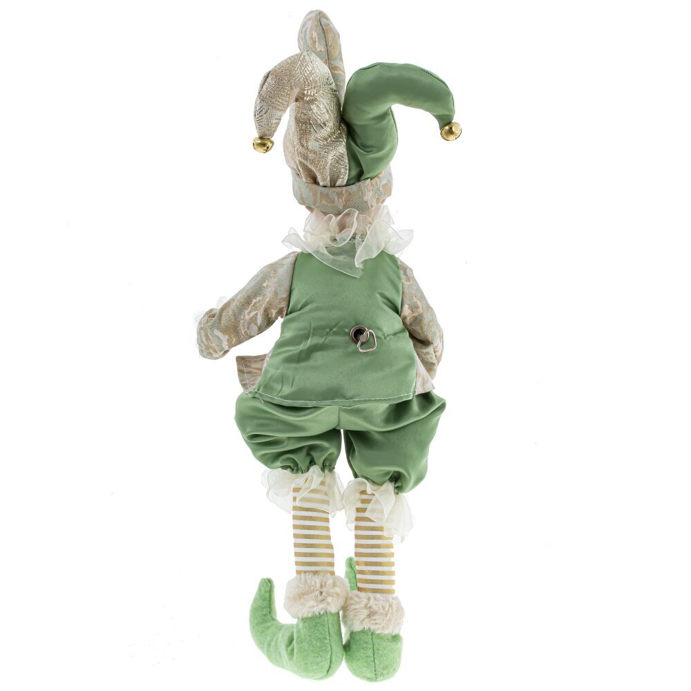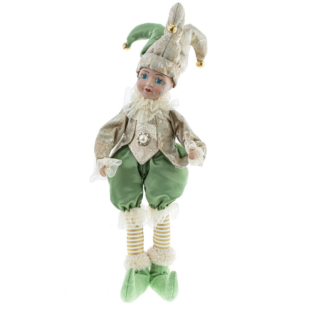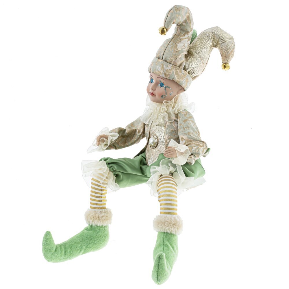 Игрушка набивная с музыкальным и движущимся механизмом "Клоун" — это очаровательная декоративная кукла, которая станет непревзойденным элементом праздника. Высота 50 см в полный рост с колпаком и 25 см в сидячей позе. Лицо и кисти рук выполнены из фарфора, что придаёт ей особую элегантность и утонченность. Роскошный костюм зелено-золотом цвете, красиво переливается при любом освещении, а шутовской колпак добавляет образу игривости и веселья. Благодаря проволоке внутри рук и ног, игрушку можно расположить в любых позах, что позволяет ей легко вписаться в любую композицию. На спине куклы находится заводной ключик, который активирует новогоднюю мелодию, под которую клоун плавно кивает головой, добавляя динамики и живости в атмосферу праздника. Эта игрушка станет отличным подарком или элементом декора, который создаст настроение волшебства и радости в вашем доме.