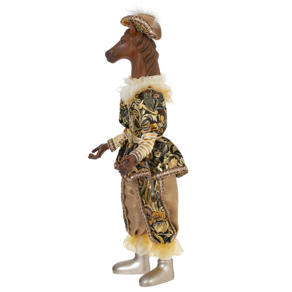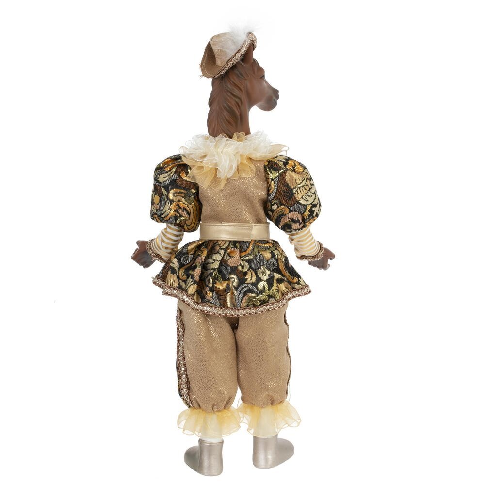 Набивная игрушка "Лошадь" в придворном костюме — изящный и необычный элемент новогоднего или интерьерного декора. Мягкая фигурка лошади выполнена с особым вниманием к деталям: роскошный костюм из блестящей ткани придаёт образу торжественность и сказочность. Игрушка создаёт атмосферу уюта и волшебства, отлично смотрится под ёлкой, на полке или в композиции с другими праздничными аксессуарами. Подойдёт как украшение, сувенир или оригинальный подарок.Стоит отметить, что голова игрушки выполнена из пластмассы, что делает изделие более легким, чем другие полимерные материалы.