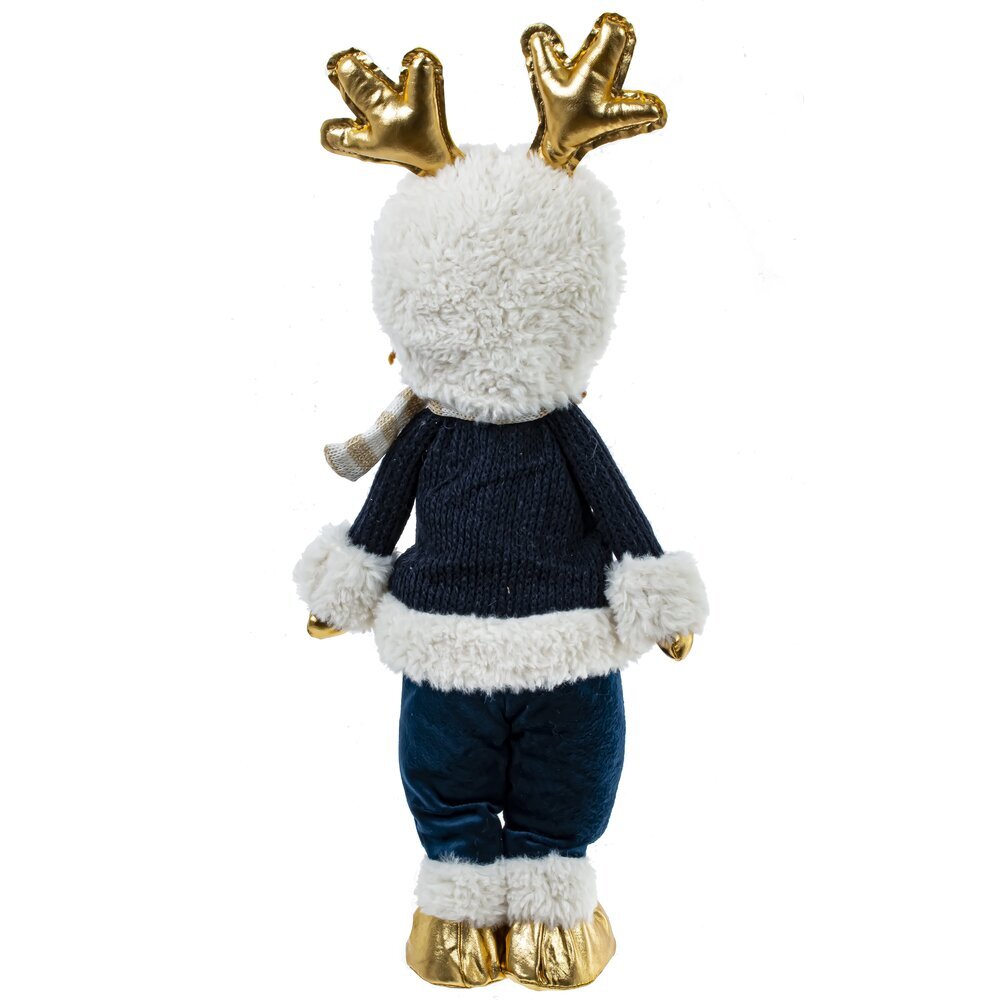 Игрушка набивная "Мальчик, Девочка" — это очаровательная интерьерная кукла, высотой 50 см. Мальчик и девочка одеты в стильные синие бархатные костюмы, дополненные зимними аксессуарами, такими как шарфик и белая меховая шапочка с золотыми рожками оленя, которые придают им особый шарм. Золотые ботиночки и золотая звездочка на груди гармонично дополняют образ. Эти игрушки прекрасно смотрятся вместе, создавая праздничную атмосферу в интерьере. Каждый из них станет не только милым украшением, но и символом дружбы и тепла. Цена указана за одно изделие.