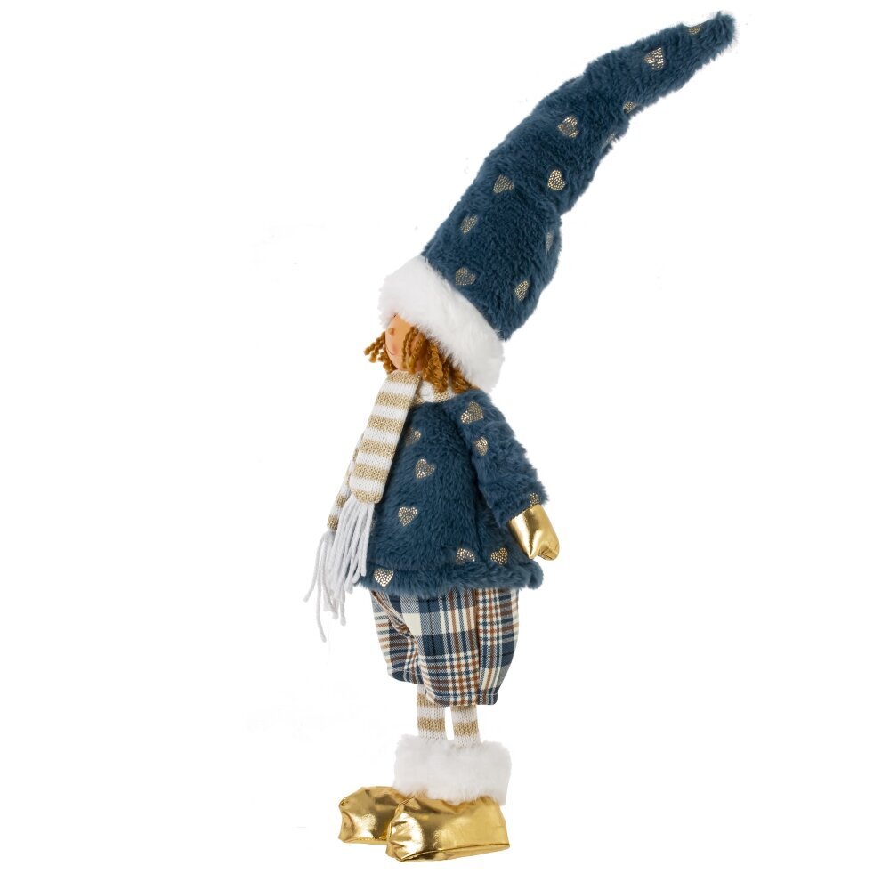 Встречайте очаровательную интерьерную куклу в стильном синем пальто и колпаке, которая станет милым и уютным дополнением вашего интерьера!