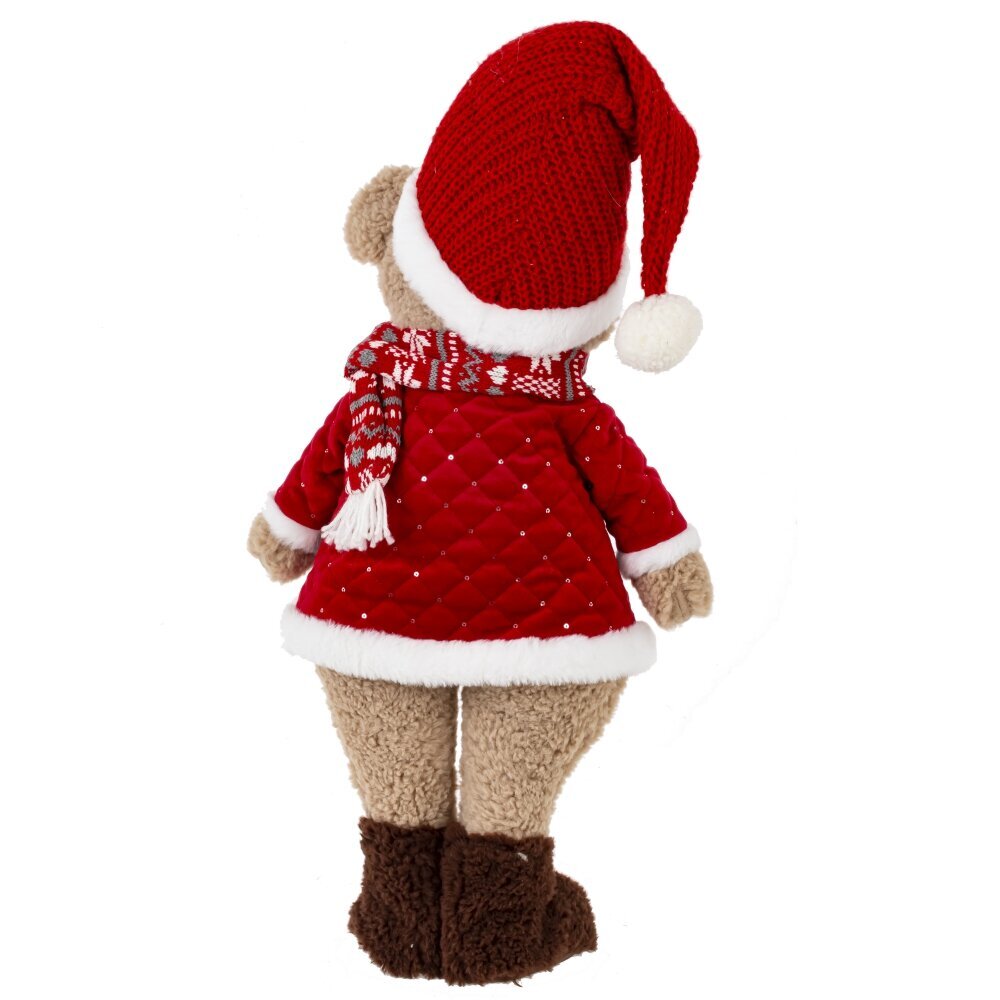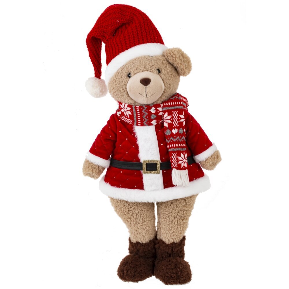 Мягкий набивной "Медведь" — это очаровательная интерьерная игрушка, которая добавит уюта в ваш дом. Шерсть медвежонка выполнена из мягкого, слегка кудрявого меха, что делает его приятным на ощупь. Он одет в красное пальто, дополненное вязанным шарфом и колпаком. Милая мордочка медведя создает ощущение тепла и дружелюбия, делая его идеальным подарком или элементом декора для уютного интерьера.