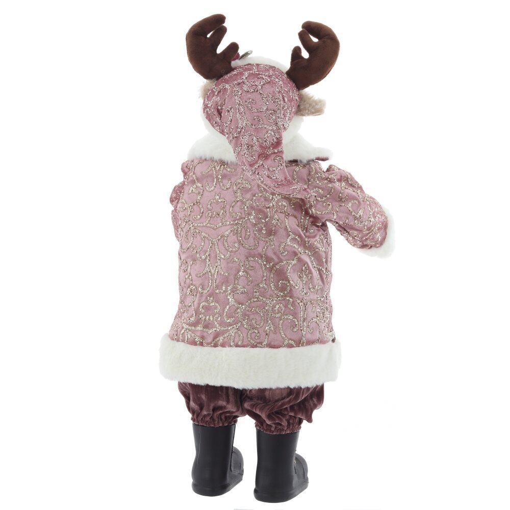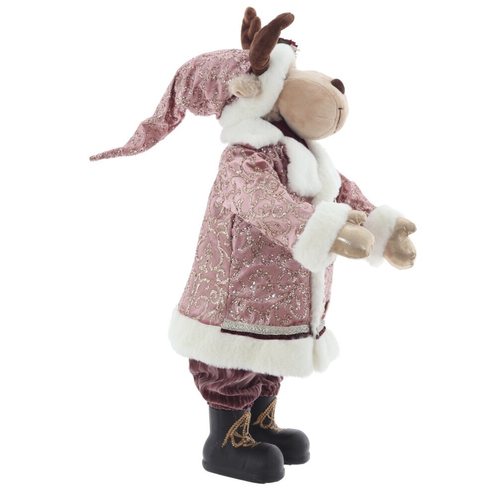 Игрушка набивная "Олень" представляет собой милую девочку-олененка в нежно розовом пальто с зототым узором и меховой отделкой. Длинный колпак в цвет пальто, цветок на рожках, варежки и сапожки придают образу особый шарм. Она станет изысканным акцентом в любом интерьере — будь то стильная гостиная, уютная детская комната или праздничный уголок, украшенный к Новому году.