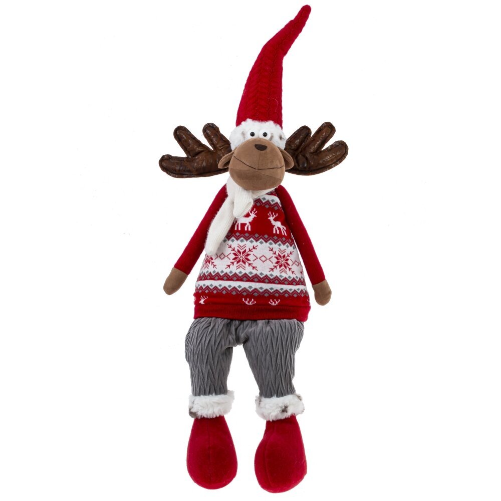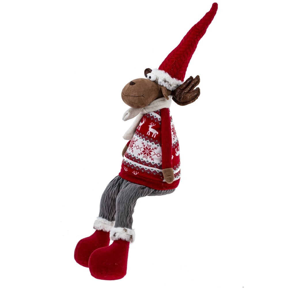 Встречайте Новый год с очаровательной интерьерной игрушкой - Оленем, который добавит в ваш дом праздничную атмосферу!Этот милый олень одет в теплый вязаный свитер и красный новогодний колпак. Его мордочка выполнена из мягкого светло-коричневого меха, что делает его особенно милым и трогательным. Рога выполнены из коричневой гладкой ткани, имитирующей кожу, добавляя игрушке реалистичности. Особая изюминка - колпак! В него встроена проволока, что позволяет придать ему любую забавную форму.Олень станет отличным дополнением к вашему новогоднему декору и подарит вам незабываемые впечатления от праздника!