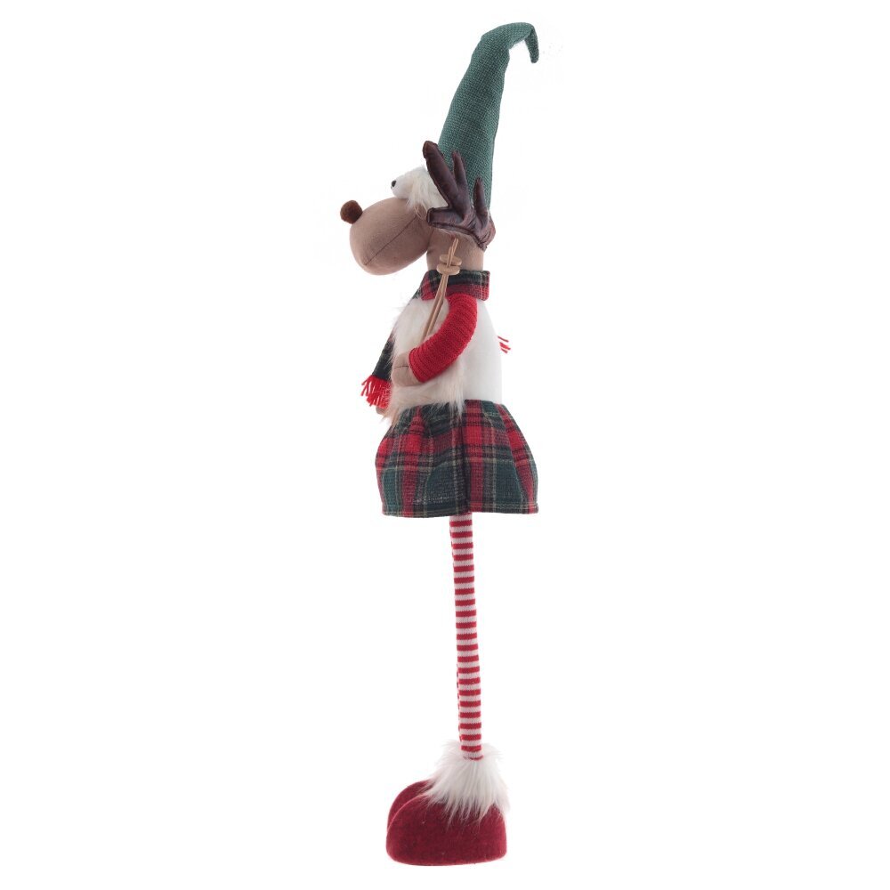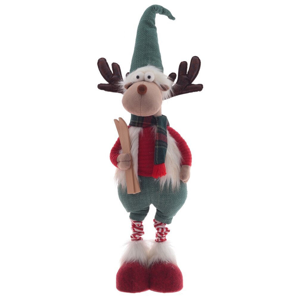 Встречайте Новый год с очаровательной интерьерной игрушкой - Оленем, который добавит в ваш дом праздничную атмосферу!Этот милый олень одет в теплый вязаный свитер и новогодний колпак. Его мордочка выполнена из мягкого светло-коричневого меха, что делает его особенно милым и трогательным. Рога выполнены из коричневой гладкой ткани, имитирующей кожу, добавляя игрушке реалистичности. Телескопические ноги позволяют легко менять высоту от 50 до 108 см, что обеспечивает универсальность и возможность адаптации под любой интерьер. Особая изюминка - колпак! В него встроена проволока, что позволяет придать ему любую забавную форму.Олень станет отличным дополнением к вашему новогоднему декору и подарит вам незабываемые впечатления от праздника!