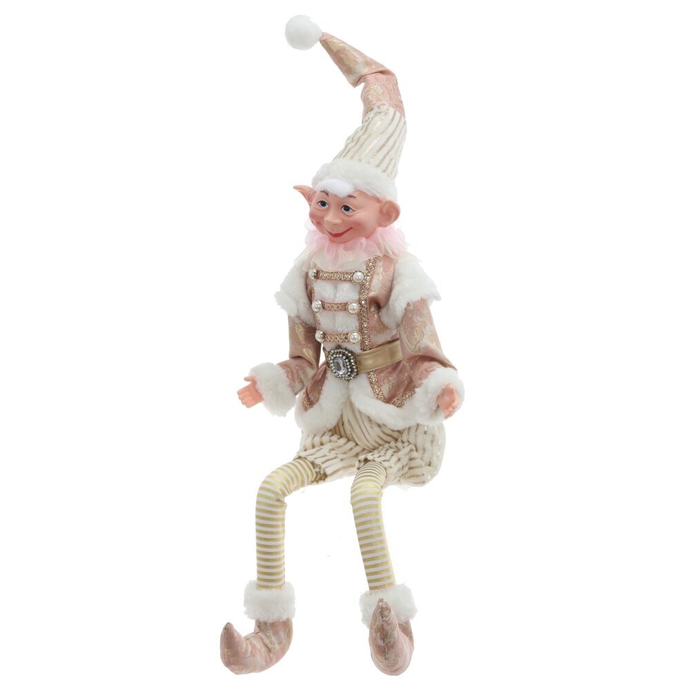 Набивная игрушка «Эльф» — изящный праздничный персонаж в мягких пастельных оттенках. У него улыбчивое личико и заострённые ушки, на голове высокая шапка с помпоном. Эльф одет в кремово?розовый жакет с меховой отделкой, блестящей тесьмой и декоративными пуговицами, дополнен поясом с пряжкой. Длинные полосатые ножки и ботинки с загнутыми носами делают фигурку особенно забавной; игрушку удобно посадить на край полки, камина или подоконника — ноги красиво свисают. Текстильный корпус с мягкой набивкой и аккуратные детали создают ощущение ручной работы. Такой эльф станет ярким акцентом новогоднего декора, украсит ёлку, подарочную композицию или праздничный стол, привнося в дом атмосферу сказки и уюта.