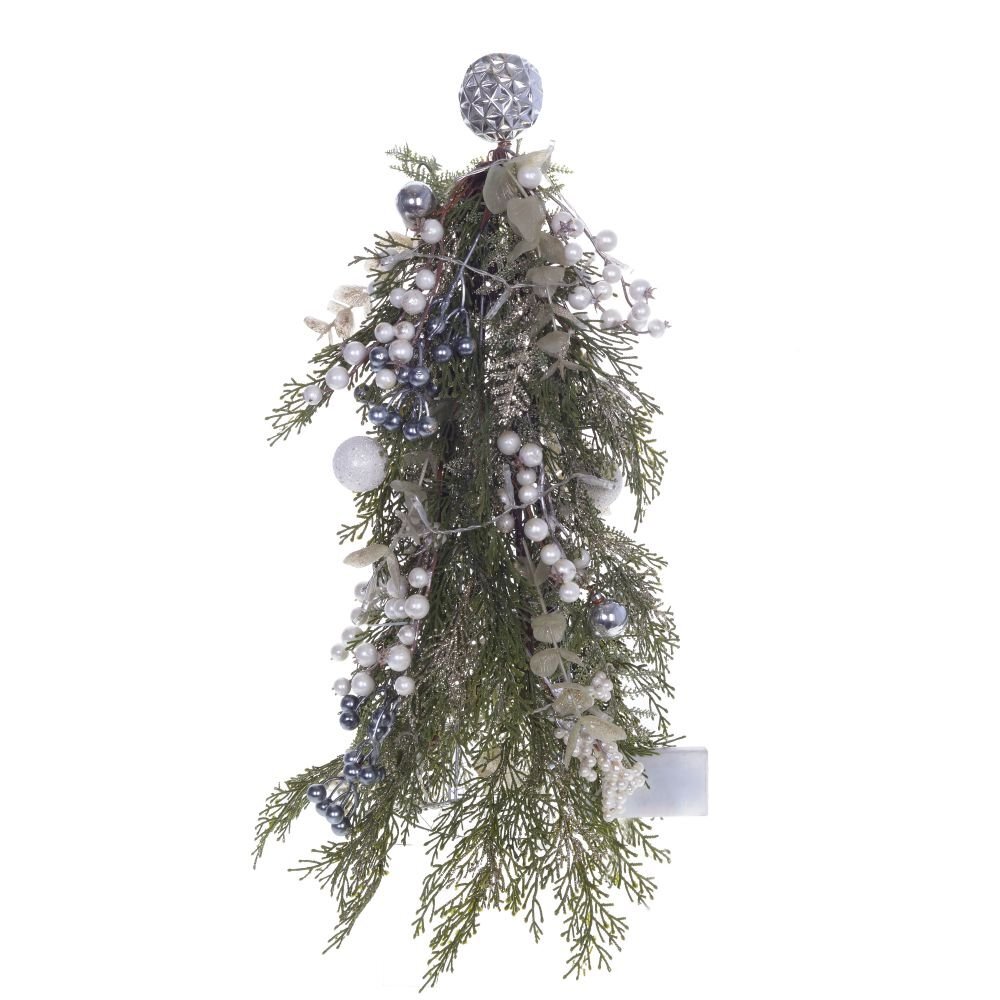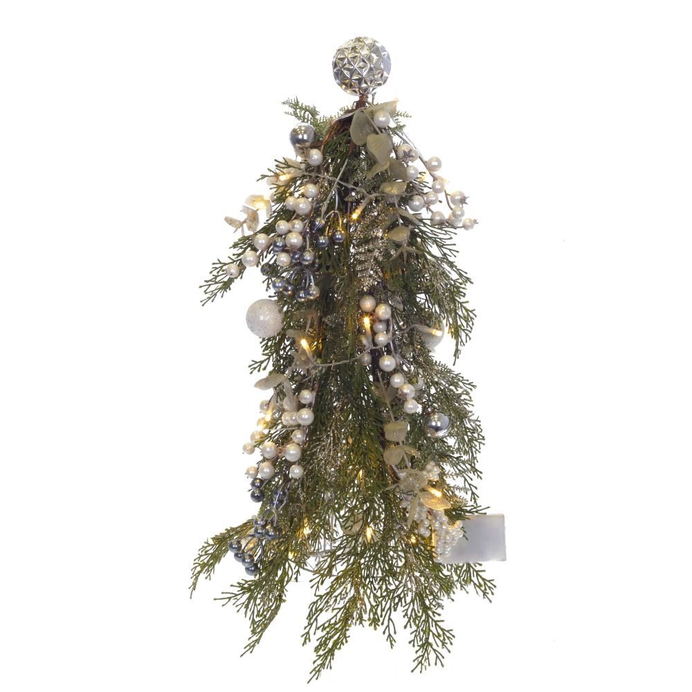 Изделие декоративное "Елка" с подсветкой, изготовлено из полимерных материалов, металла. Размер: L25 W25 H60 см, упаковка-пакет. Работает от трех батареек АА (не прилагаются).