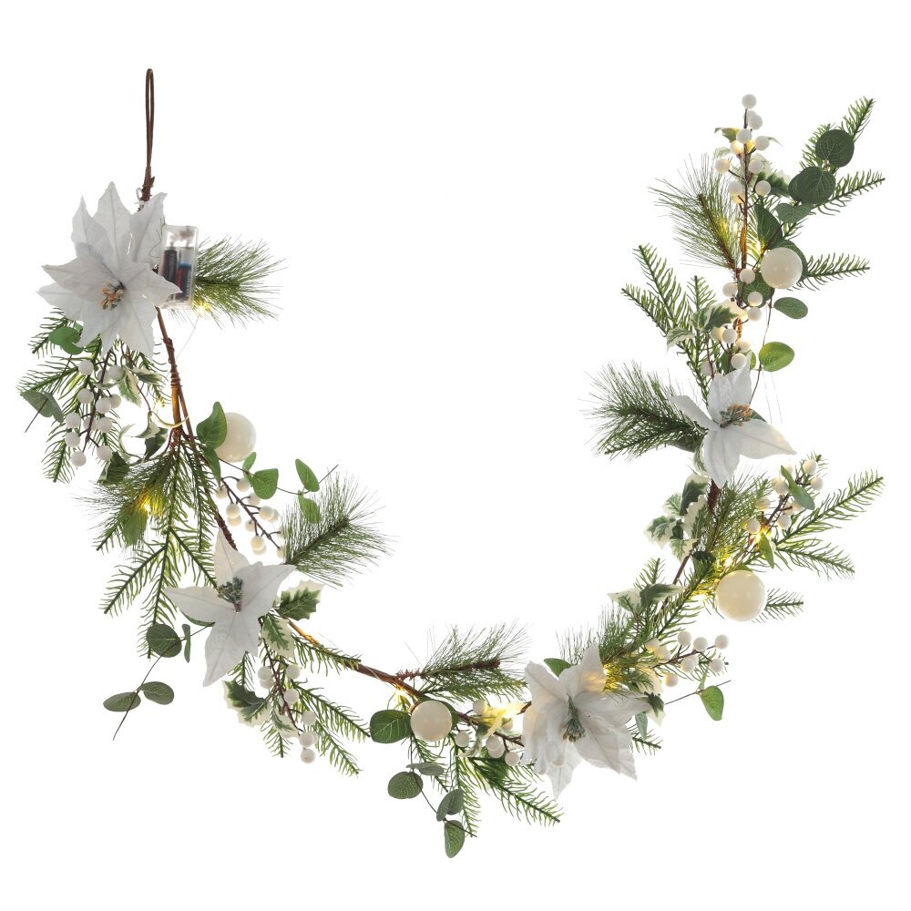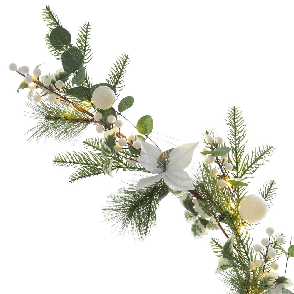 Новогодняя гирлянда - это особенно уютное украшение, которым можно украсить свой дом, подарив его обитателям настроение праздника! Сплетена из искусственных хвойных веток и украшена листьями, цветами, шарами и ягодами.