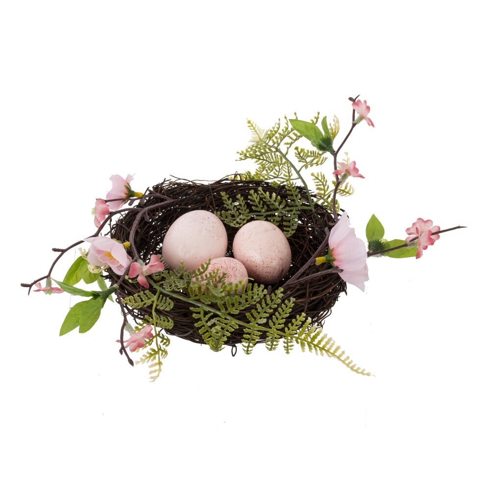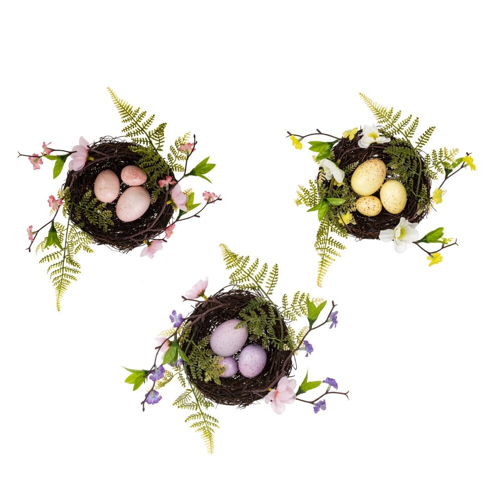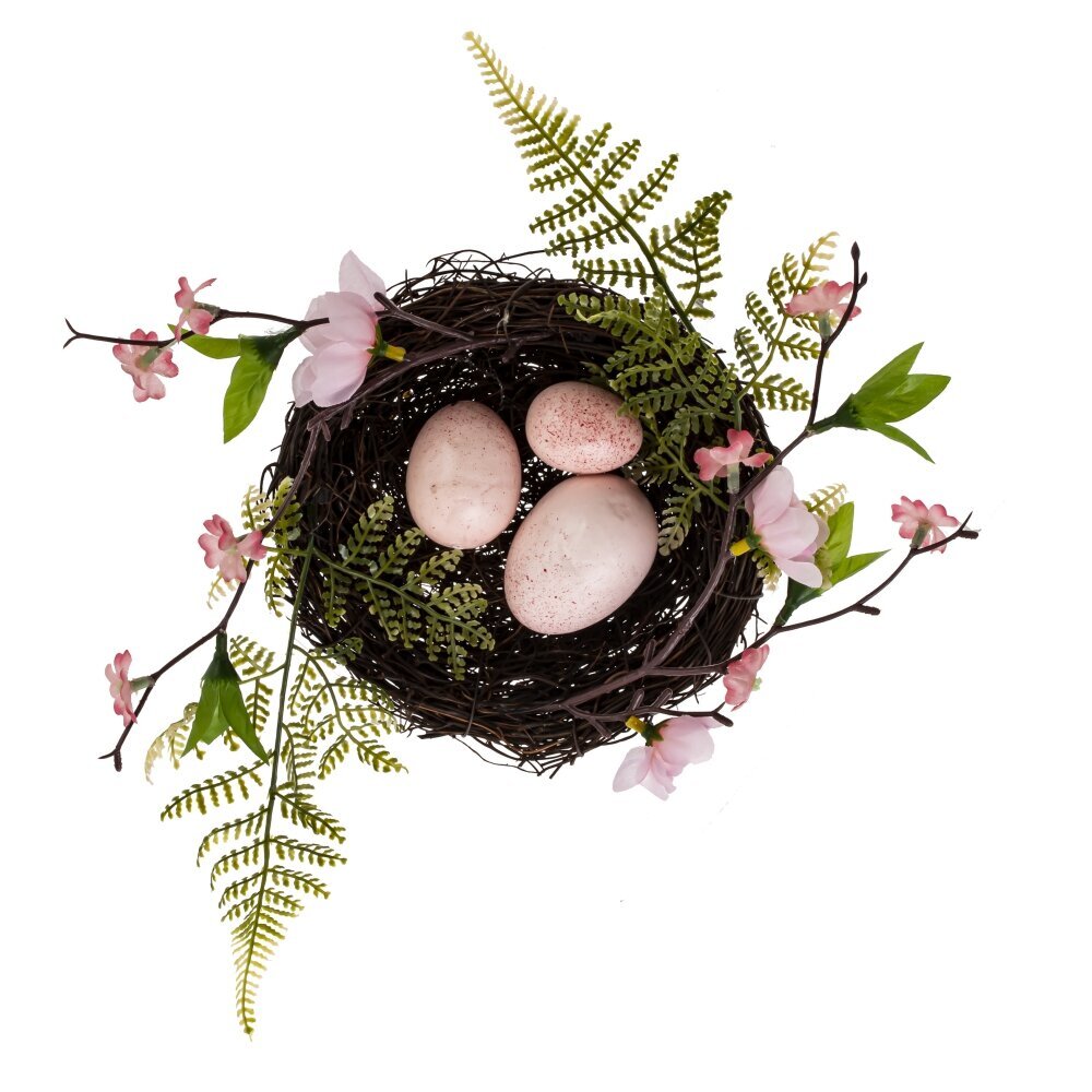 Декоративное изделие "Гнездо пасхальное" — это изящный и стильный элемент интерьера, который прекрасно украсит ваш дом к празднику Пасхи. Композиция состоит из выполненного гнезда, оформленного с использованием полимерных, текстильных и натуральных материалов. В центре располагаются декоративные яйца нежного цвета, символизирующие возрождение и новую жизнь. Дополняют композицию искусственные цветы и зелень, придавая ей свежесть и естественность. Такое украшение станет отличным дополнением праздничного декора, создавая уютную и весеннюю атмосферу в вашем доме. Представлено в трех вариантах.