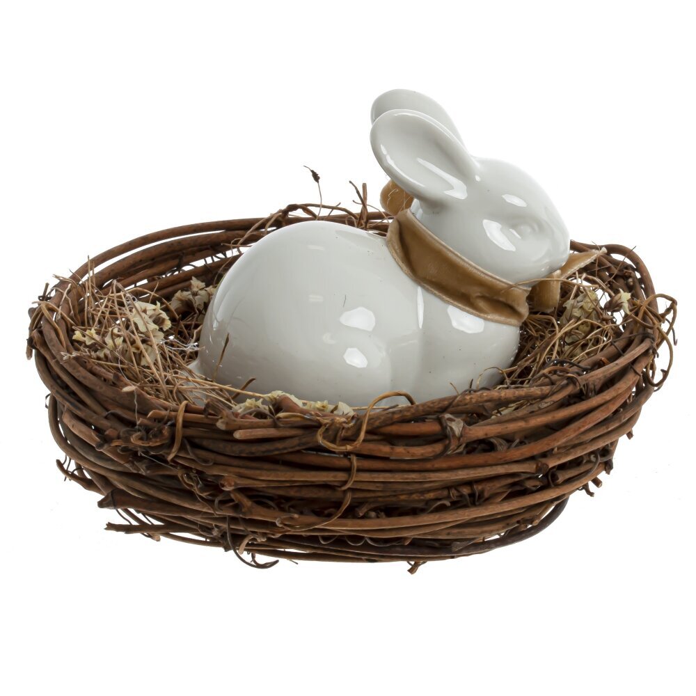 Декоративное "Гнездо пасхальное" – это изделие, которое добавит атмосферу волшебства и радости в ваш дом, создавая неповторимую атмосферу праздника. Главным акцентом является керамическая фигурка зайчика, который расположен внутри. Великолепное сочетание цвета и материалов делает его привлекательным. Используйте изделие в качестве подарка, украшения или элемента декора на пасхальном столе.