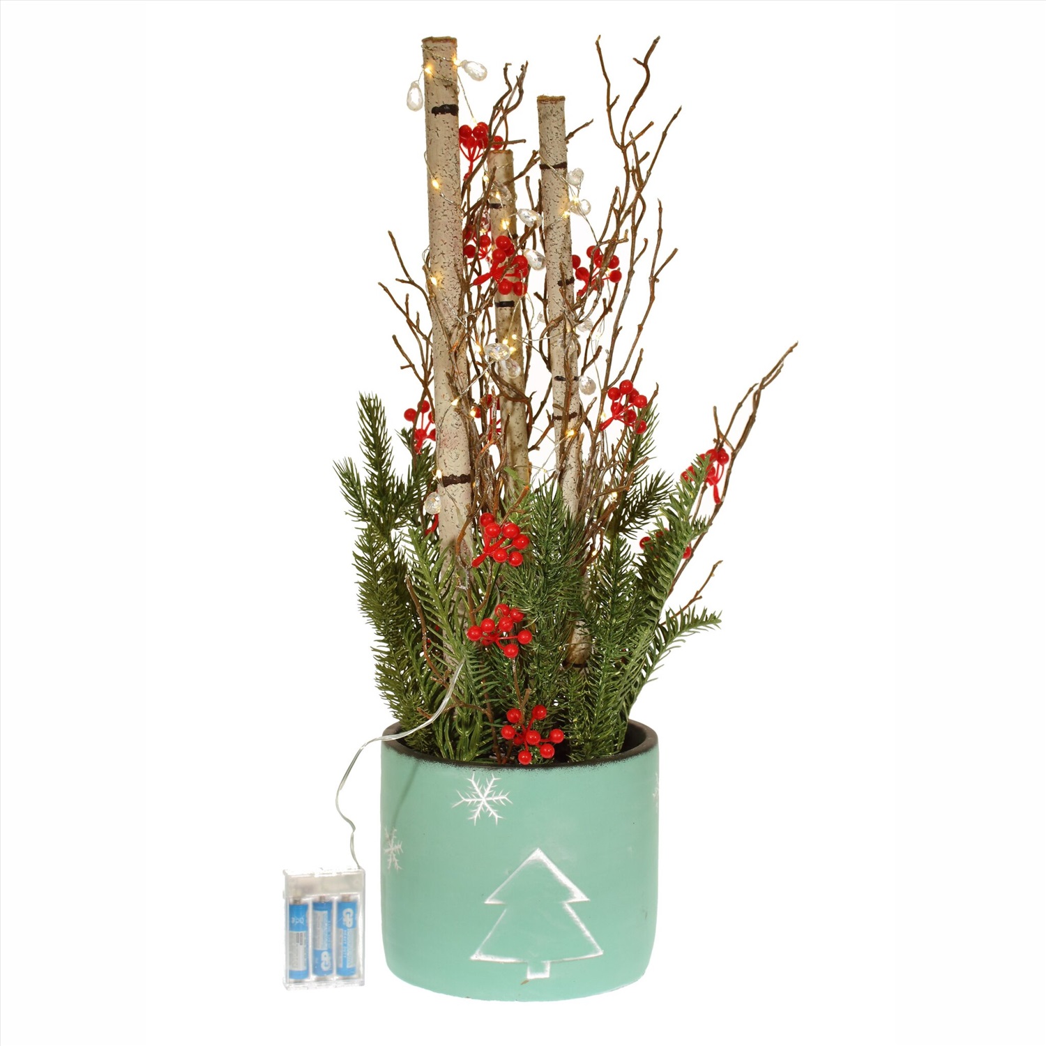 Яркие красные ягоды, расположенные среди пушистых сосновых веточек в кашпо смотрятся невероятно стильно и празднично! А тёплые огоньки создают невероятно душевную и праздничную атмосферу!