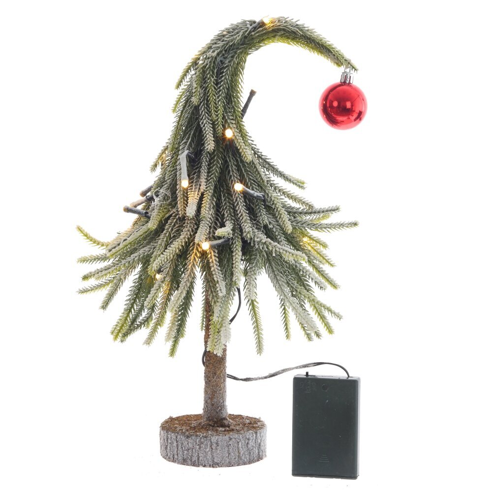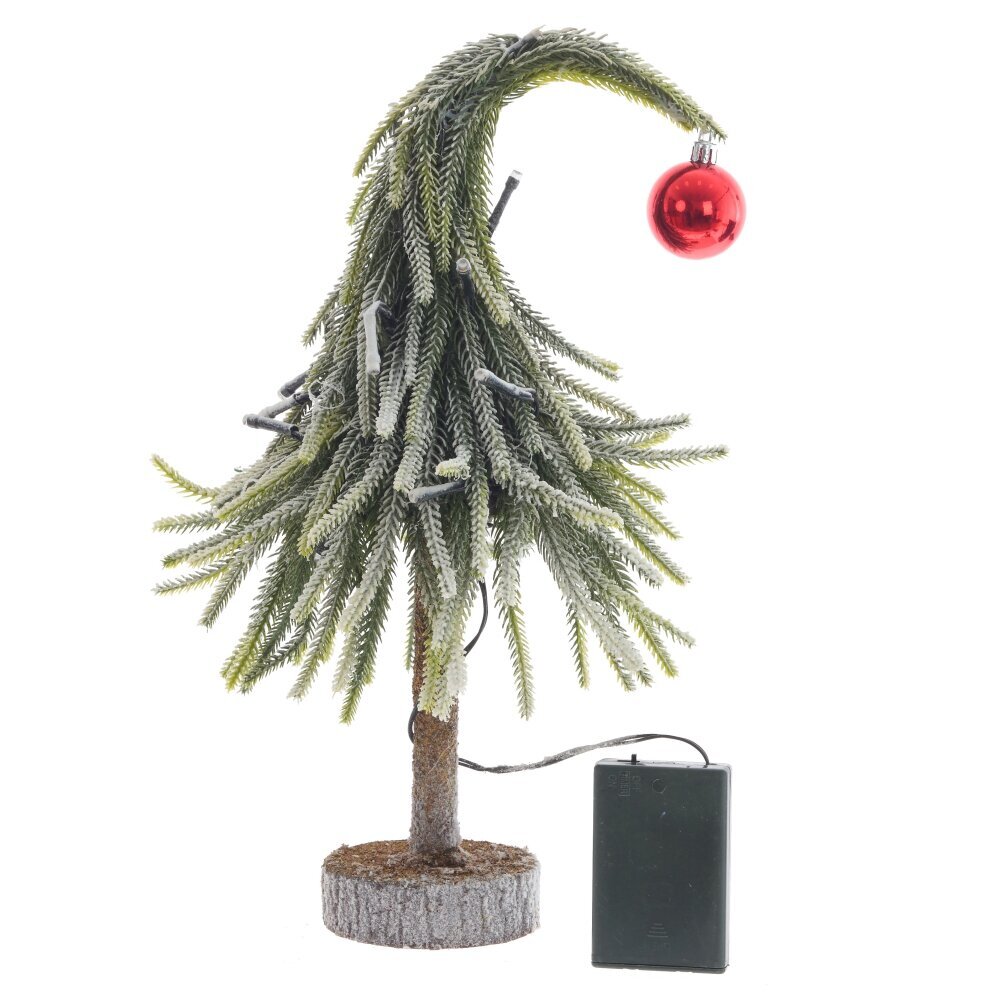 Декоративная елка с подсветкой станет ярким акцентом вашего новогоднего интерьера. Установленная на натуральном спиле, она создает уютную и естественную атмосферу. Искусственные ветки украшены гирляндой, излучающей теплый свет, придавая комнате волшебство зимних праздников. Работает от трех батареек типа AA, которые не входят в комплект. Верхушка елки загнута в форме колпака, с нее свисает яркий красный шарик, добавляя оригинальности. Это стильное решение идеально подходит для создания праздничного настроения в вашем доме или офисе, а также станет замечательным подарком для близких.