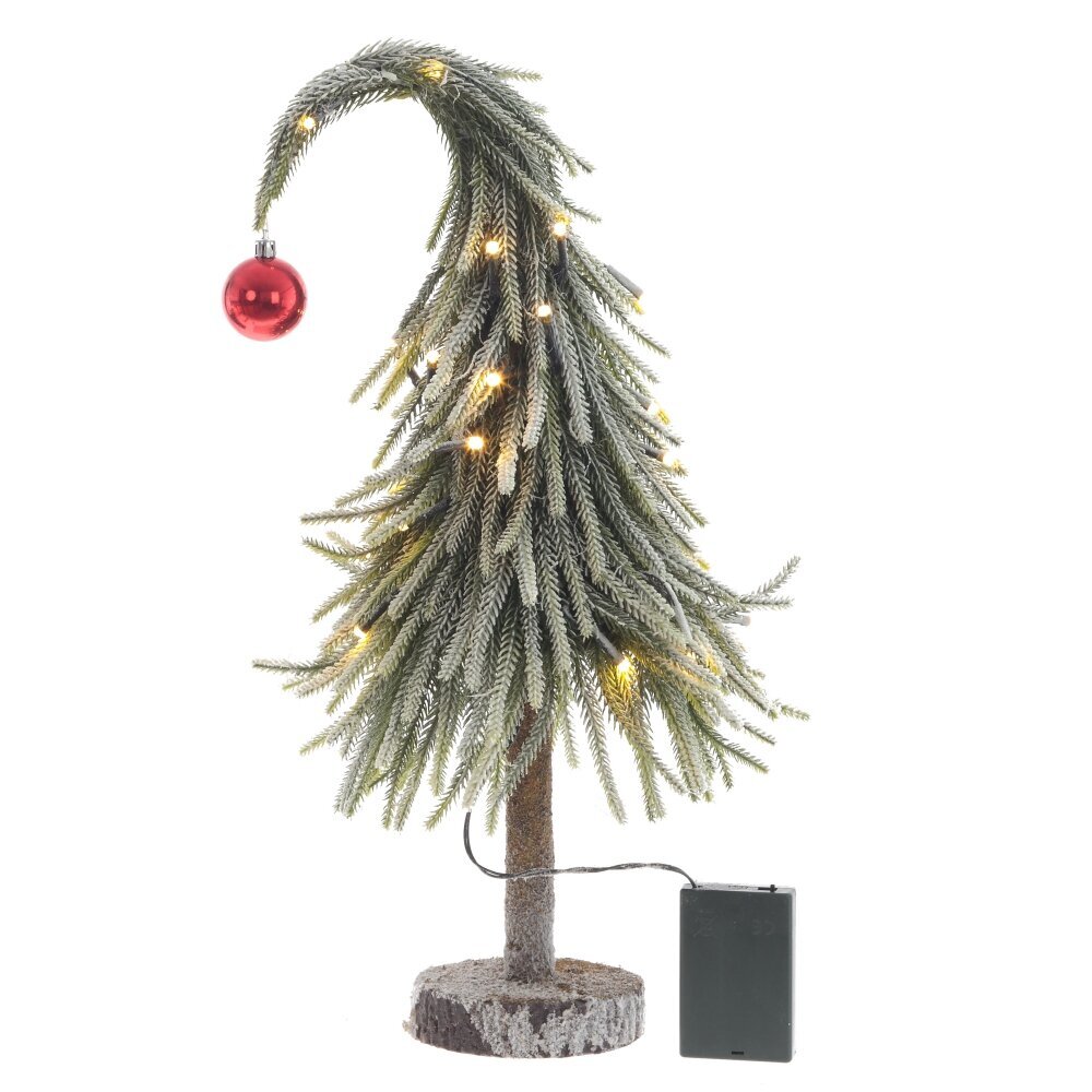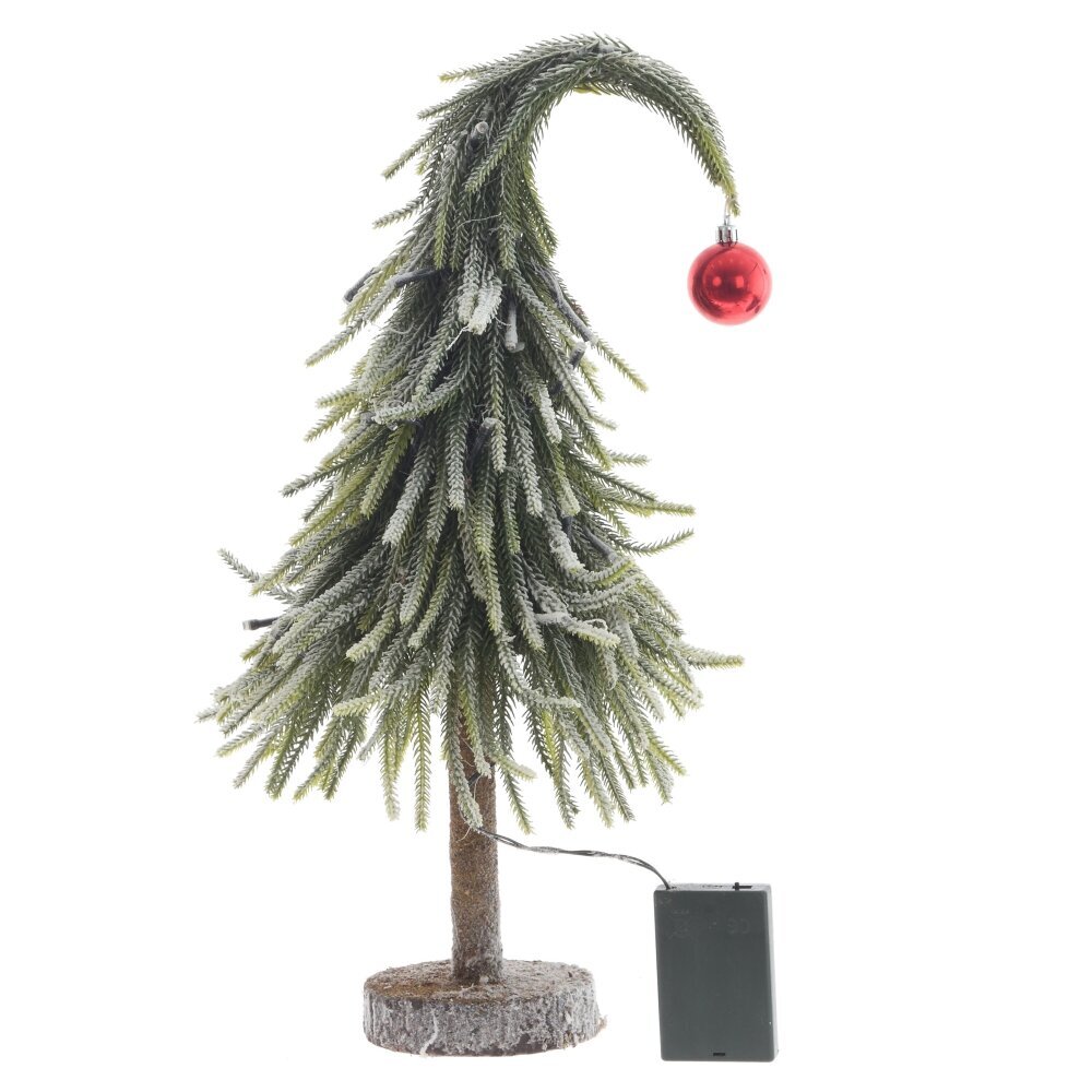 Декоративная елка с подсветкой станет ярким акцентом вашего новогоднего интерьера. Установленная на натуральном спиле, она создает уютную и естественную атмосферу. Искусственные ветки украшены гирляндой, излучающей теплый свет, придавая комнате волшебство зимних праздников. Работает от трех батареек типа AA, которые не входят в комплект. Верхушка елки загнута в форме колпака, с нее свисает яркий красный шарик, добавляя оригинальности. Это стильное решение идеально подходит для создания праздничного настроения в вашем доме или офисе, а также станет замечательным подарком для близких.