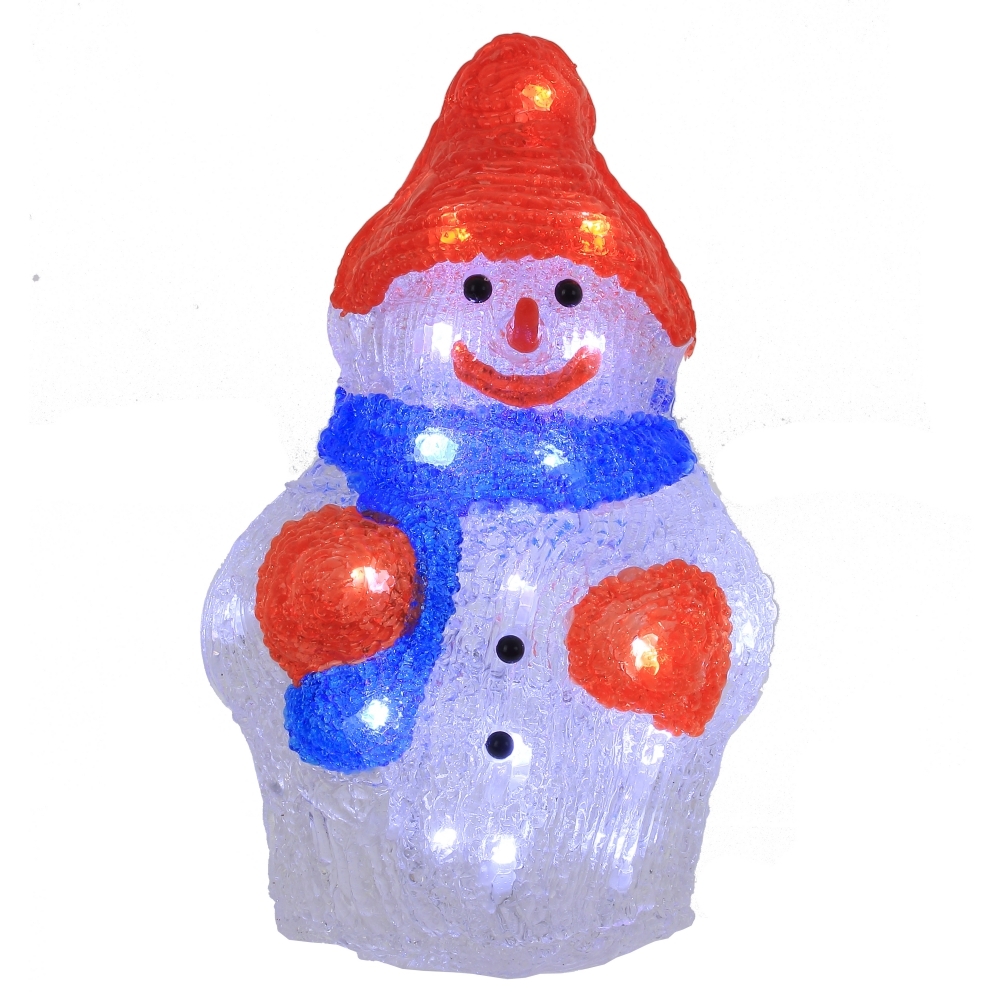 Светящийся Снеговик в красной шапочке очарует вас своим обликом и сиянием огоньков. Светящаяся фигура подарит вашему празднику улыбки и чудесное настроение. Материал: акрил. Работает от сети 220V. Может быть использована как внутри помещений, так и на улице (до - 10 °C) .