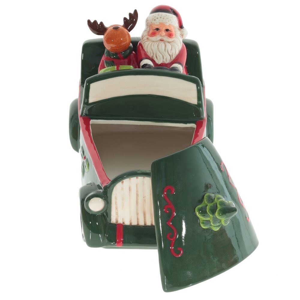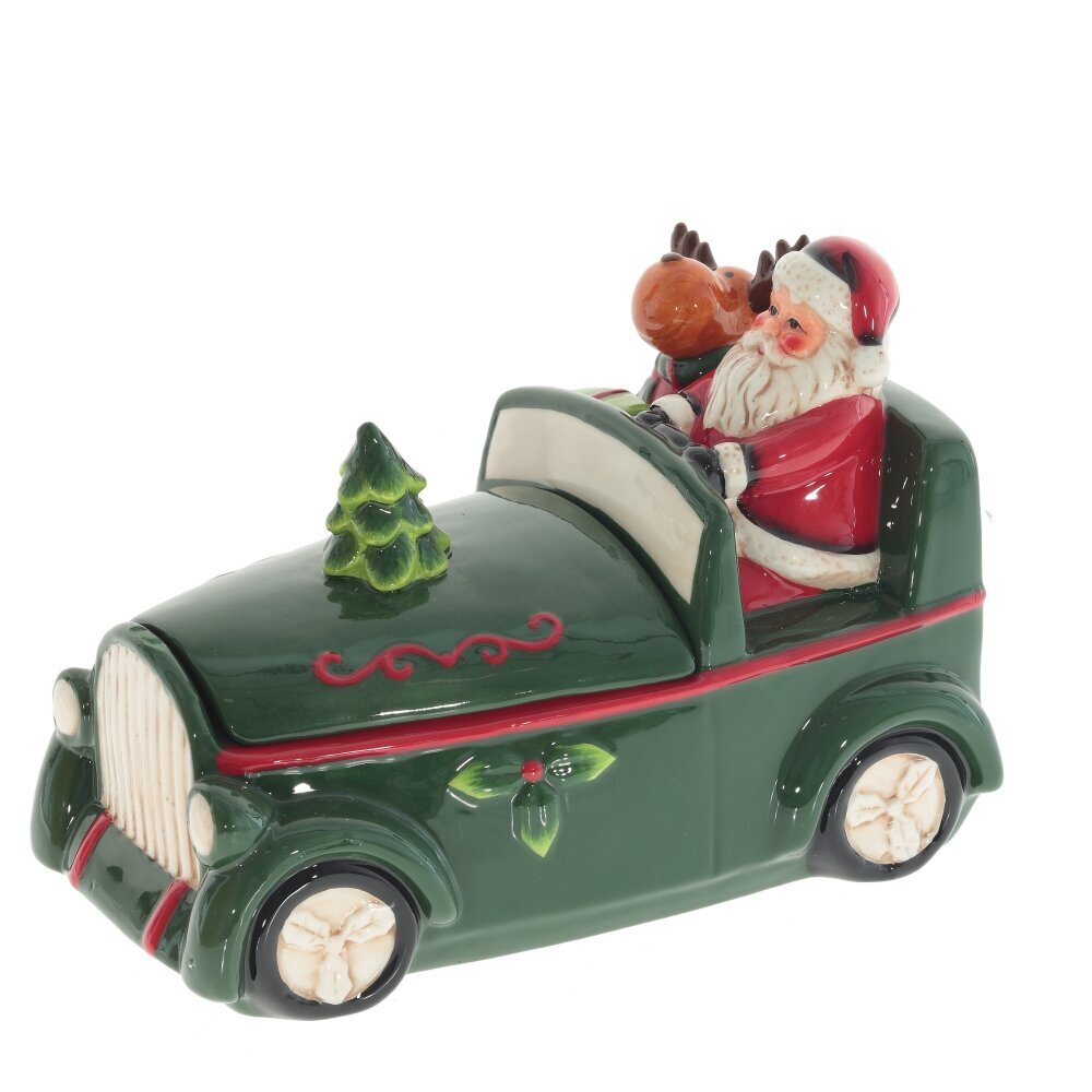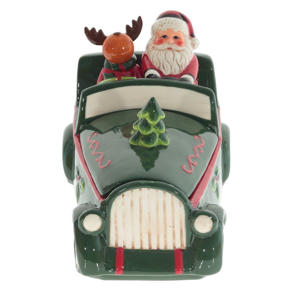 Конфетница в виде фигурки автомобиля с новогодними персонажами станет ярким украшением праздничной сервировки и отличным подарком на Новый год или Рождество. Она выполнена из прочной керамики и покрыта глазурью, которая придает ей нарядное глянцевое сверкание.