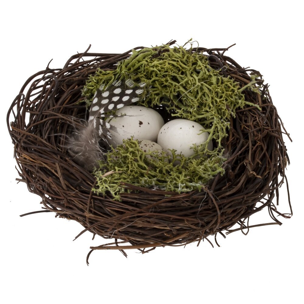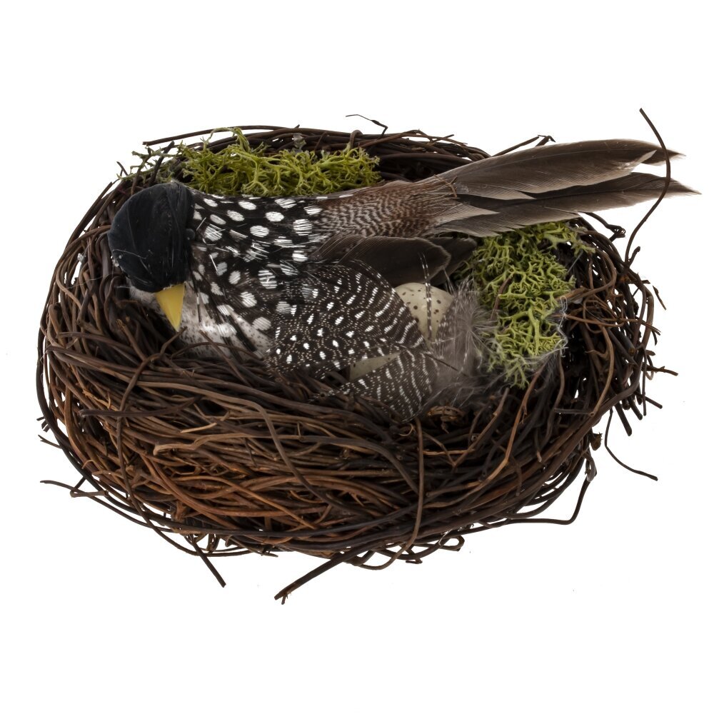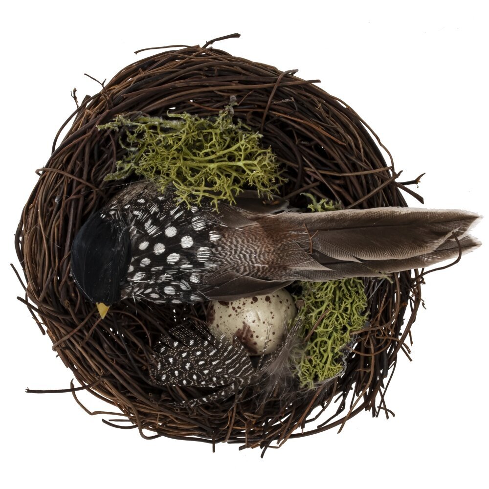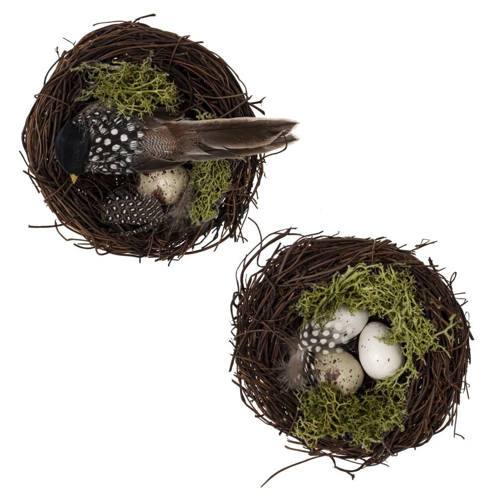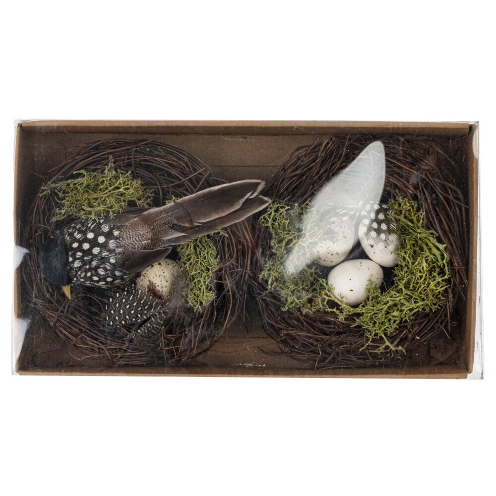 Набор из 2-х декоративных изделий "Пасхальная композиция" станет отличным дополнением к праздничному декору. Композиции выполнены из полимерных и натуральных материалов, что придаёт им естественный и гармоничный вид. Гнёзда из тонких веточек дополнены искусственным мхом, перьями и декоративными яйцами, создавая атмосферу уюта и весеннего обновления. В одном из гнёзд находится фигурка птицы с реалистичной окраской, что подчёркивает природную тематику композиции. Эти украшения идеально подойдут для оформления пасхального стола, фотозоны или интерьера, наполняя пространство теплом и природной эстетикой.