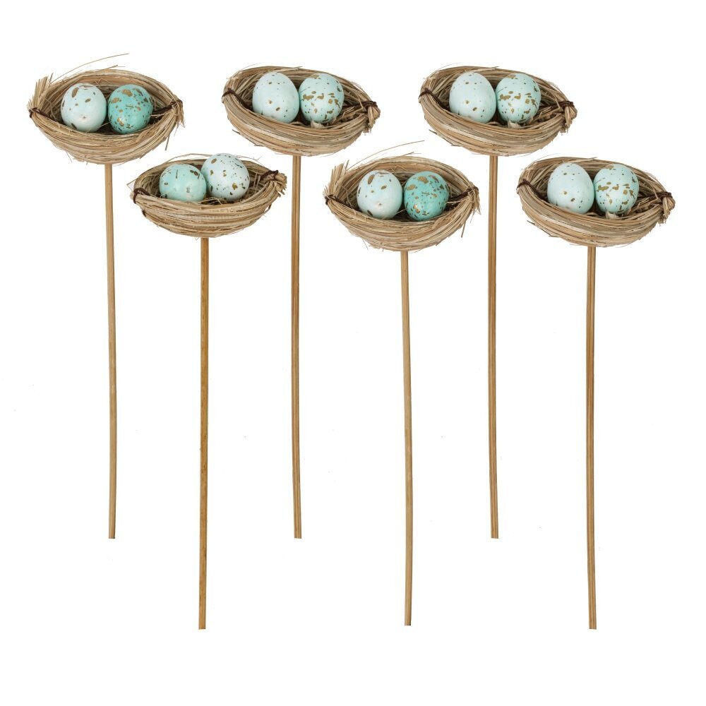 Декоративный набор из 6 изделий "Гнездо пасхальное" – это элегантные вставки, выполненные из полимерных материалов, которые станут отличным украшением для праздничной композиции. Каждое гнездо имитирует натуральное переплетение веточек и содержит внутри три небольших декоративных яйца с натуральным окрасом и пятнистым узором. Гнезда размещены на тонких деревянных палочках, что делает их удобными для декора цветочных композиций, интерьерных украшений, оформления подарков и создания тематических композиций к Пасхе. Размер гнезда – 6?5?3 см. Благодаря натуральным оттенкам и качественным материалам этот набор органично впишется в любой интерьер и внесет атмосферу весны и уюта.