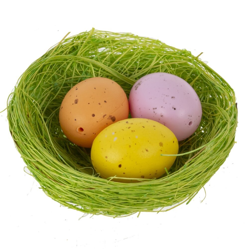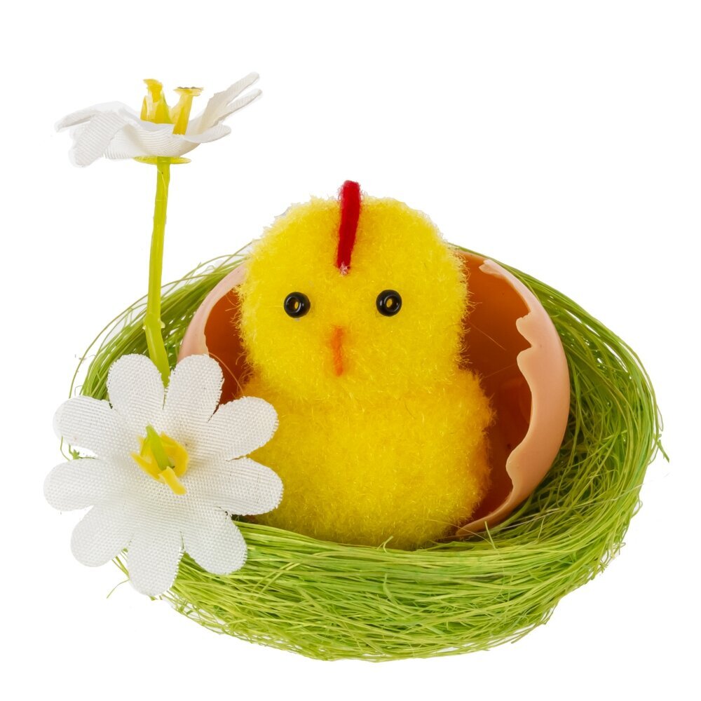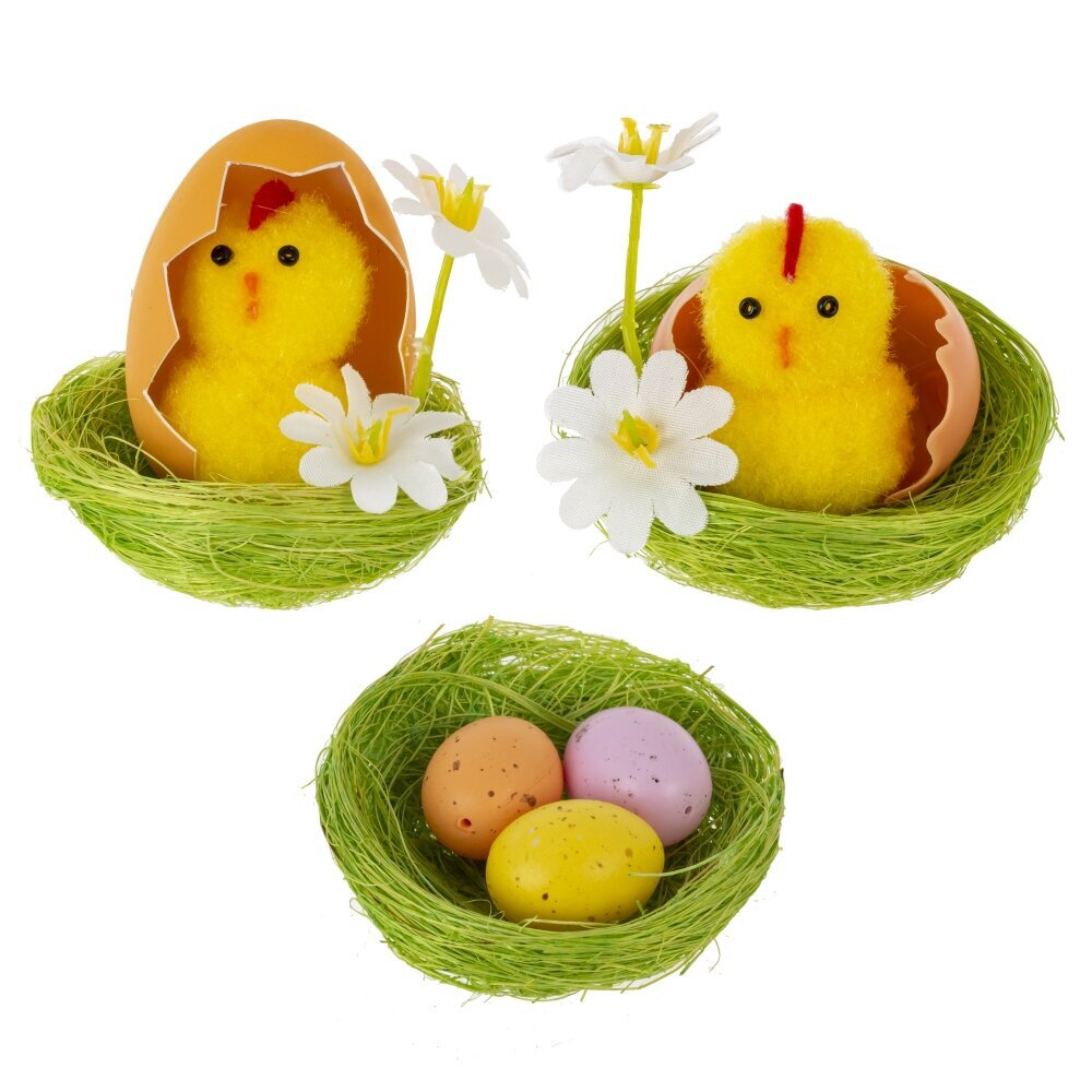 Набор из девяти декоративных изделий "Гнездо пасхальное" станет прекрасным украшением для вашего дома в период пасхальных праздников. Изделия выполнены из полимерных, текстильных и натуральных материалов, что придаёт им естественный и уютный вид. Композиция включает в себя миниатюрное птичье гнездо из натурального материала, украшенное искусственными зелёными элементами, а также забавного жёлтого цыплёнка, сидящего внутри декоративного яйца. Этот набор идеально подходит для создания праздничного настроения, оформления интерьера, декорирования праздничного стола или пасхальной корзины. Благодаря использованию натуральных и качественных материалов, композиция выглядит очень реалистично и гармонично вписывается в весенний декор.