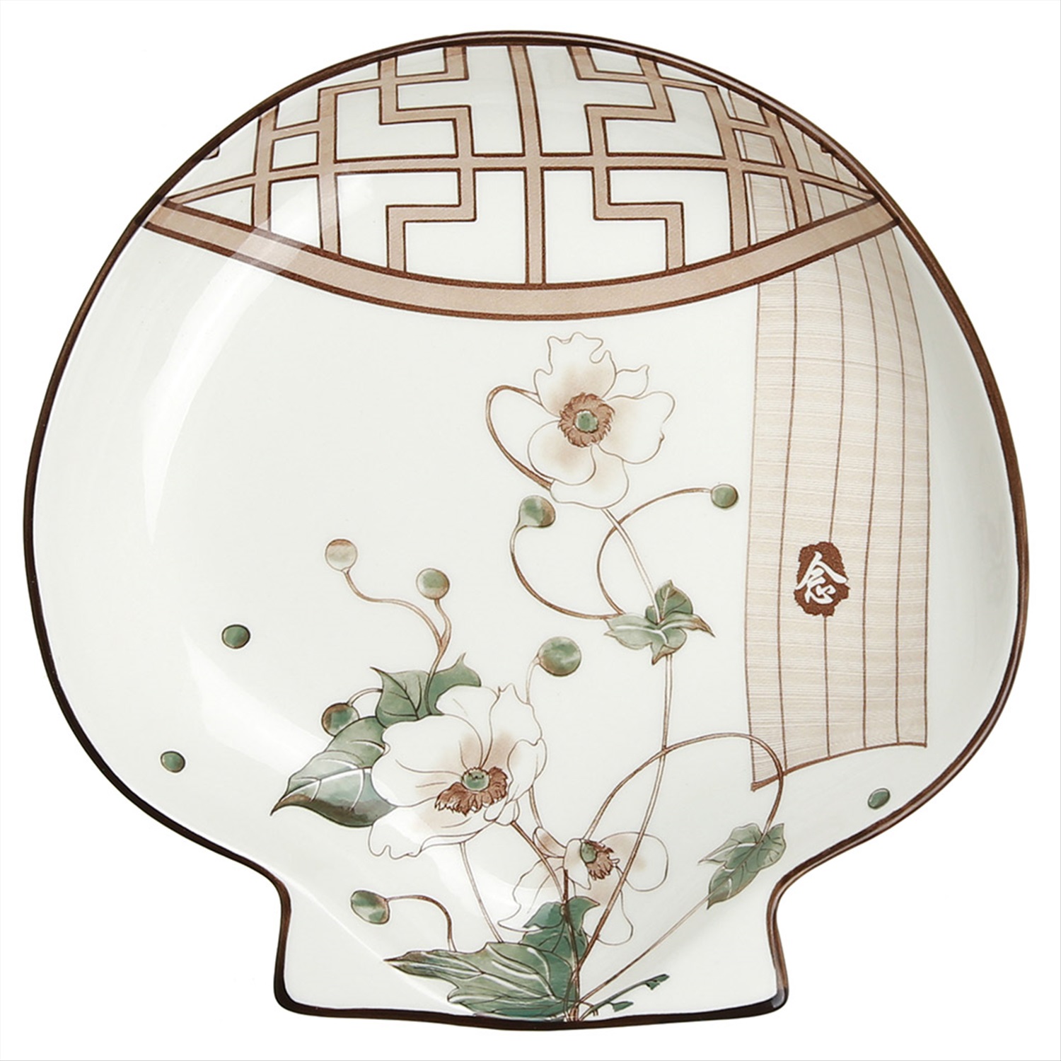 "Гармония" Блюдо фарфоровое 209х208х38мм, форма "ракушка" с деколью, отводка (Китай)