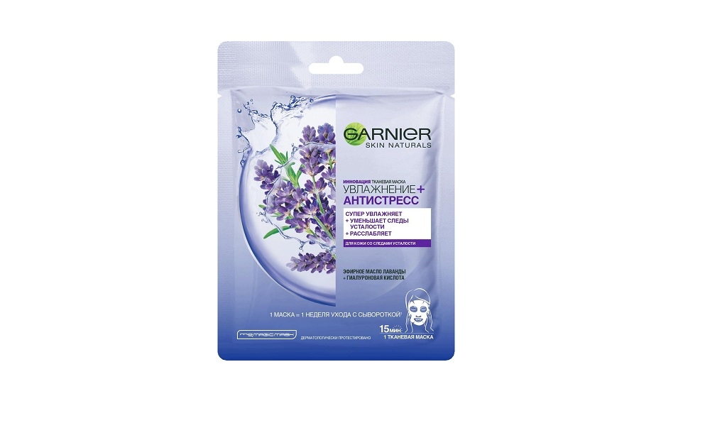 Инновационная тканевая маска пропитана гелем, обогащенным эфирным маслом лаванды, гиалуроновой кислотой и увлажняющей сывороткой. Нанесенная на лицо, маска действует как компресс, уменьшающий следы усталости и увлажняющий глубокие слои кожи. Тканевая маска мгновенно увлажняет Вашу кожу и дарит ощущение комфорта, как после массажа. Это настоящий момент заботы о себе и своей коже и возможность насладиться тонким ароматом лаванды. Подходит для всех типов кожи, даже чувствительной.