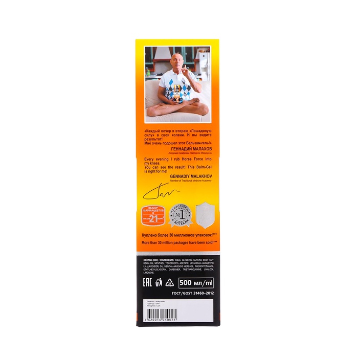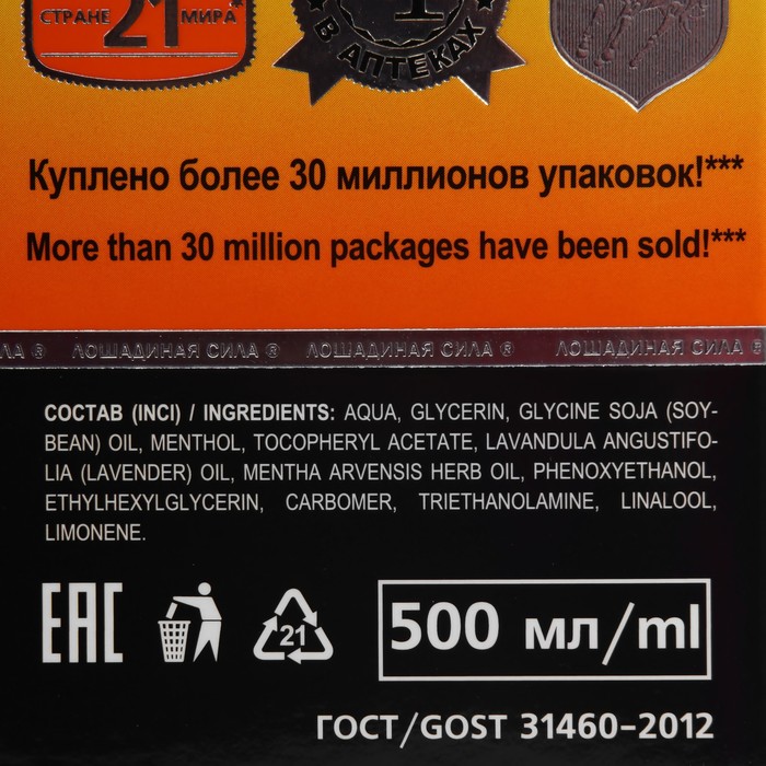 Производитель: Лошадиная Сила; Габариты: 7 x 6,5 x 22,5; Доставка: Платная; Страна: Россия; В боксе: 25 шт; Состав: См. на упаковке; Материалы: см. на упаковке; Фасовка: по 1 шт; Индивидуальная упаковка: Цветная картонная коробка; Сертификат: ЕАС; Объём, мл: 500; Темпер. ограничение НЕ НИЖЕ ℃: 0