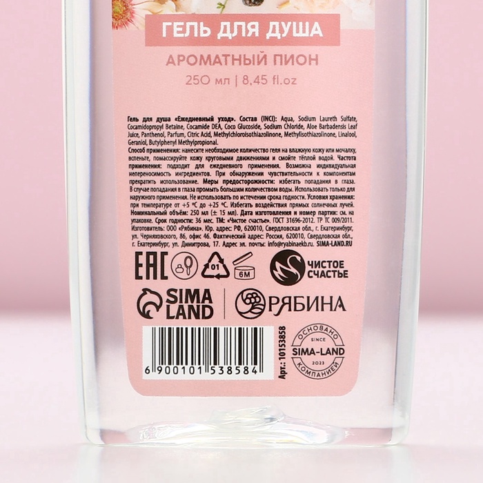 Производитель: Чистое счастье; Габариты: 4,5 x 4,5 x 15,5; Доставка: Платная; Страна: Россия; В боксе: 54 шт; Состав: См. на упаковке; Материалы: см. на упаковке; Фасовка: по 1 шт; Индивидуальная упаковка: Без упаковки; Сертификат: ЕАС; Набор: Нет; Цвет: Прозрачный; Для кого: Для женщины; Объём, мл: 200; Вид упаковки: Без упаковки; Тематика праздника: Универсальная тематика; Адресат: Без адресата; Область применения: Для тела; Аромат: Пион; Темпер. ограничение НЕ НИЖЕ ℃: +5; Темпер. ограничение НЕ ВЫШЕ ℃: +25; Возраст: Для взрослых; Назначение: Очищение, детокс; Форма выпуска: Флакон без дозатора