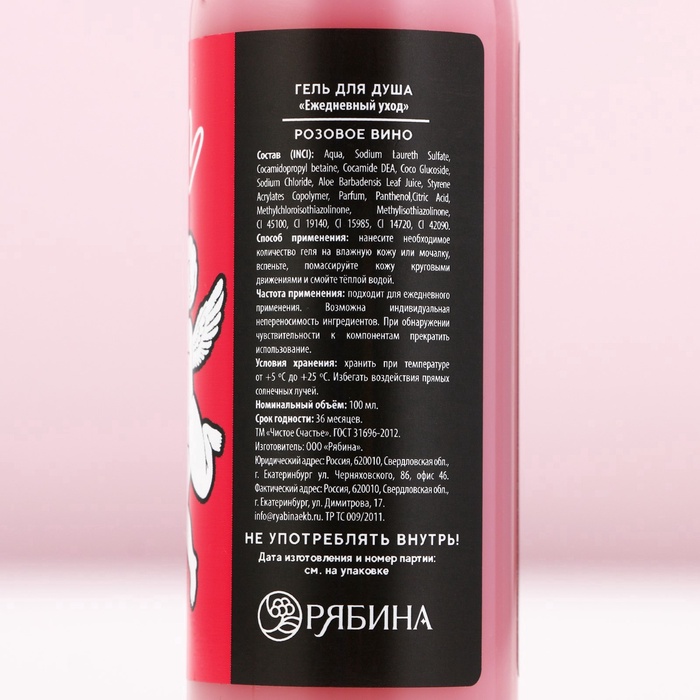 Гель для душа «Люблю себя и вино», 100 мл, аромат розового вина, Чистое счастье