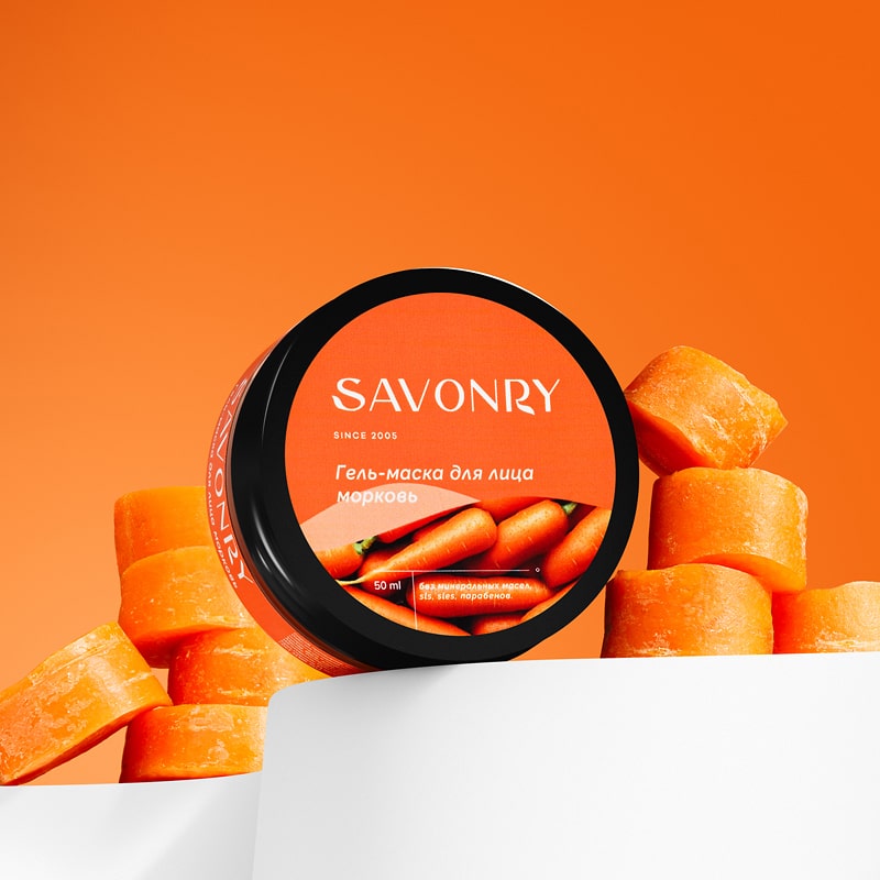 Состав: INCI- Daucus Carota Sativa (Carrot) Root Juice (восстановленный сок моркови 70% по каратиноидам), Glycerin, Niacinamide (витамин PP), Sodium Alginate, Panthenol (провитамин В5), Benzyl Alcohol, Ethylhexylglycerin, Ceratonia Siliqua (Carob) Gum (камедь рожкового дерева), Parfum. Советы по использованию: Нанесите необходимое количество маски на лицо по массажным линиям, через 10-15 минут смойте водой. Маску удобнее смывать с помощью губки или спонжа для лица. Избегайте попадания на поврежденные участки кожи. В случае расслоения маску необходимо перемешать. Гель-маска для лица МОРКОВЬ имеет широкий спектр свойств, предназначена для всех возрастов, подходит для жирной, сухой и нормальной кожи. Маска эффективно справляется с сухостью, шелушением, стянутостью кожи, уменьшает отечность подтягивает овал лица. Каждый компонент, входящий в состав сока моркови, оказывает свое воздействие:
