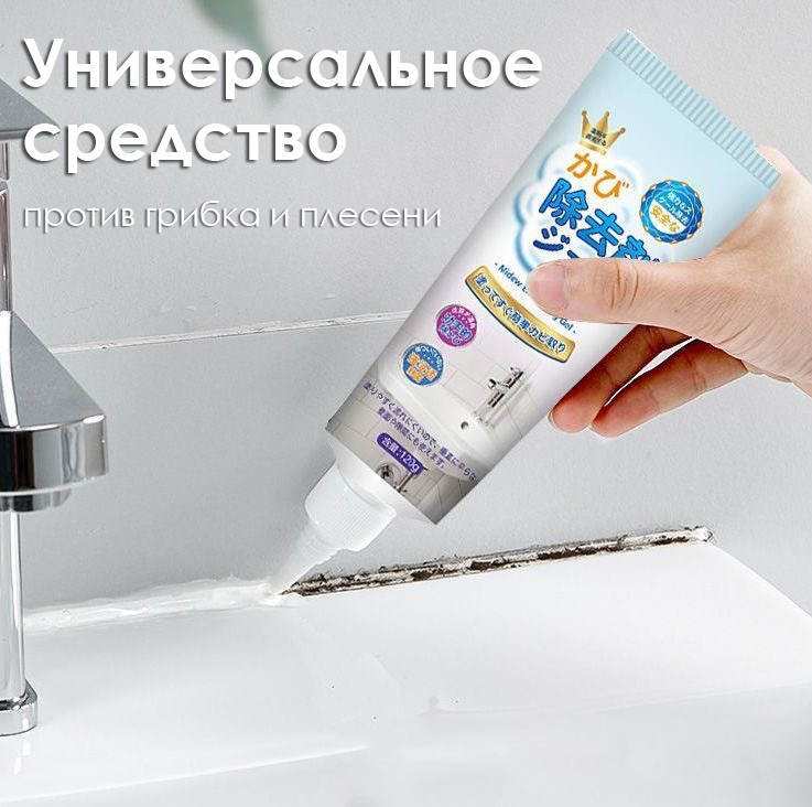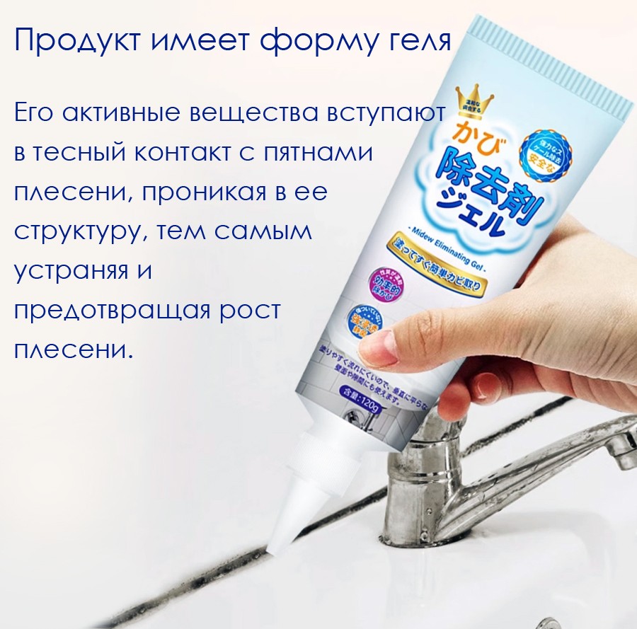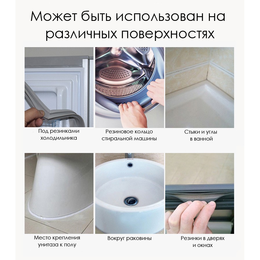 Универсальное средство против грибка и плесени, которое должно быть в каждом доме. Глубоко проникает, очищает и дезинфицирует уплотнительные резинки в стиральной машине и холодильнике, а также кафельные и сантехнические швы в ванной комнате, помогая предотвратить их повторное появление.Убивает до 99% бактерий и микробов.Не содержит вредных химикатов и токсичных веществ, что делает его безопасным для использования в жилых помещениях, особенно в тех, где есть дети и домашние животные., Продукт имеет форму геля, его активные вещества вступают в тесный контакт с пятнами плесени, полностью проникая в ее структуру, тем самым устраняя и предотвращая рост плесени.Гель не течет, поэтому его можно использовать на вертикальных поверхностях. Продукт удобен, прост в использовании и полностью справляется с задачей за одно, два нанесения. Не требует сложных приготовлений или дополнительных инструментов., Способ применения:Шаг 1. Протрите место, которое вам нужно очистить, сухой тканью.Шаг 2. Нанесите равномерным слоем толщиной около 3 мм. на места появления плесени и грибка.Шаг 3. Смойте водой примерно через 8-10 часов (Совет! Наносите перед сном и очищайте утром)Шаг 4. Протрите обработанную поверхность влажной тканью.Рекомендуется использовать резиновые перчатки. Беречь от детей!