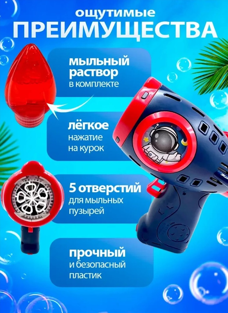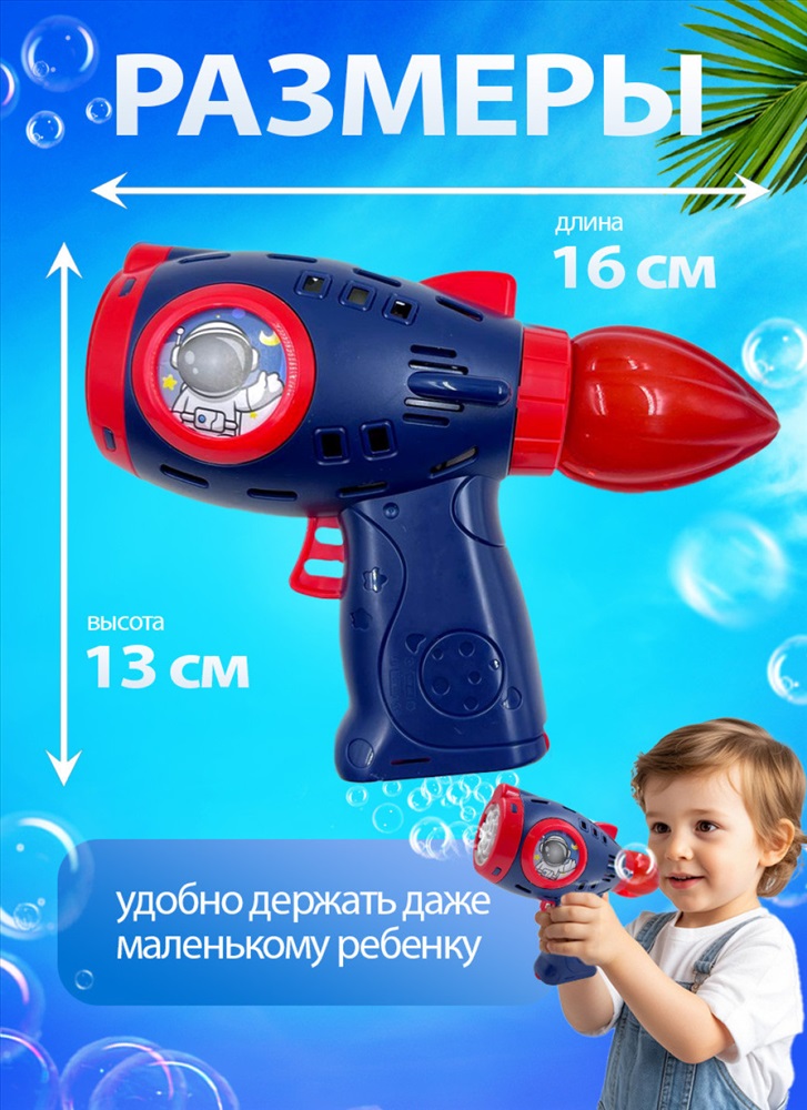 Пистолет-генератор мыльных пузырей в виде ракеты — это инновационное устройство, которое станет отличным подарком для детей и любителей космоса. Уникальный дизайн в форме настоящей ракеты с LED подсветкой хвоста создает эффектный визуальный образ, который привлекает внимание девочек и мальчиков. Пистолет работает от батареек, что обеспечивает его мобильность и удобство использования в любых условиях. Генератор мыльных пузырей способен создавать сотни пузырей за одну минуту, превращая любое мероприятие в настоящее шоу. В комплекте поставляется специальный мыльный раствор, который гарантирует стабильное и качественное образование пузырей. Удобный размер устройства идеально подходит для детской руки, что делает его использование комфортным даже для самых маленьких. Пистолет-генератор мыльных пузырей оснащен LED подсветкой, которая светится в темноте, добавляя элемент волшебства в процесс игры. Это устройство не только развлекает, но и способствует развитию моторики и воображения у детей. Благодаря своей форме и функциональности, пистолет в виде ракеты станет незаменимым атрибутом для игр на свежем воздухе и домашних праздников. Работа от батареек позволяет использовать генератор в любом месте, не беспокоясь о наличии розетки. Это делает его идеальным для выездных мероприятий и пикников. Пистолет-генератор мыльных пузырей — это не просто игрушка, а целый мир фантазий и радости, который подарит незабываемые эмоции каждому ребенку.