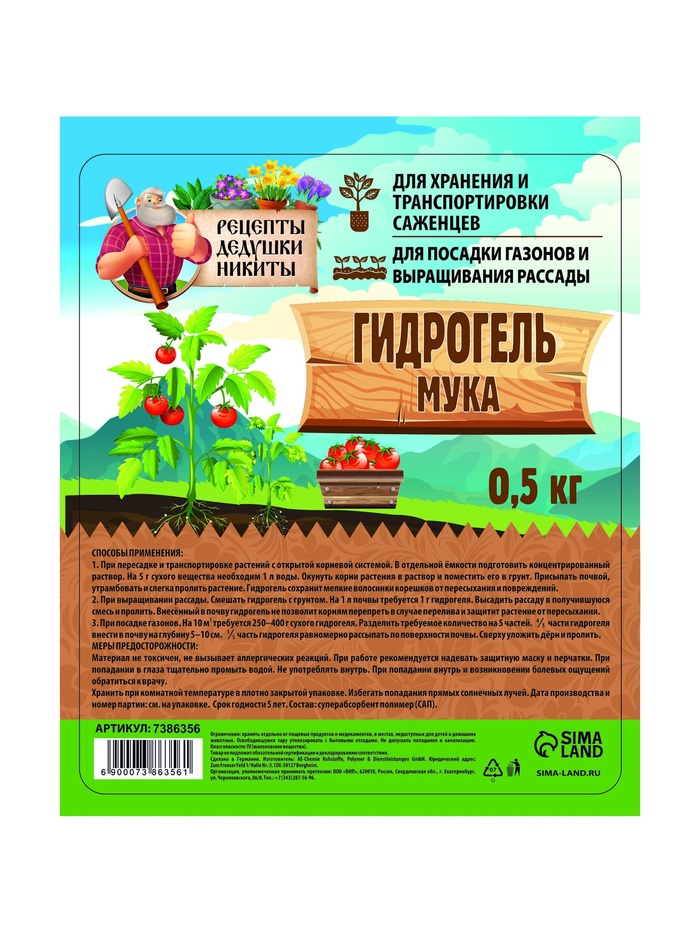 Производитель: Рецепты дедушки Никиты; Габариты: 18 x 18 x 3; Страна: Россия; В боксе: 40 шт; Состав: См. на упаковке; Материалы: см. на упаковке; Фасовка: по 1 шт; Индивидуальная упаковка: Пакет; Сертификат: Не подлежит сертификации; Область применения: Для газонов, Для рассады; Происхождение: Минеральные (неорганические); Препаративная форма: Порошок; Периоды применения: Весна, Лето; Класс опасности: 4 класс (мало опасные); Вид выращиваемой культуры: Универсальный; Вес/Объём: 1 г; Вид: Мука; Фиксированная цена: Да