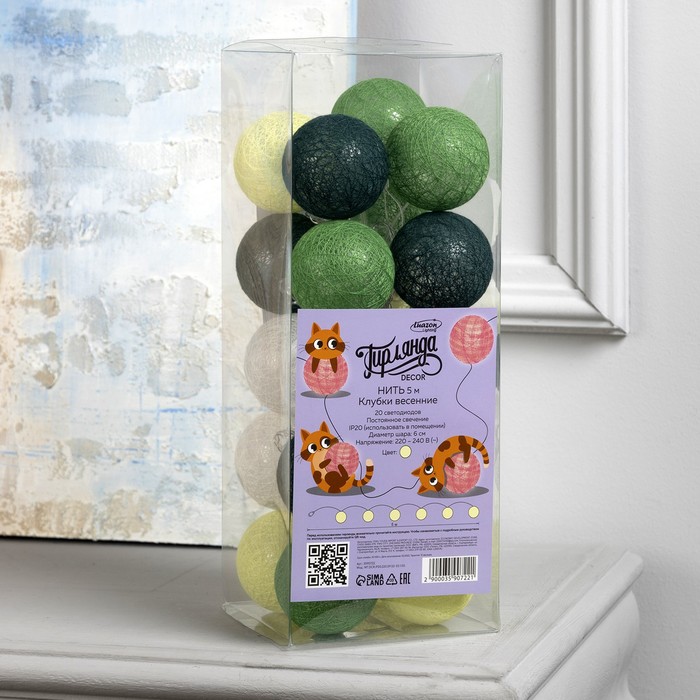 Производитель: Luazon Lighting; Габариты: 32,5 x 12,5 x 12,5; Страна: Китай; В боксе: 20 шт; Состав: Металл, пластик; Материалы: металл, пластик; Фасовка: по 1 шт; Индивидуальная упаковка: PVC; Сертификат: ЕАС; Цвет нити гирлянды: Прозрачный; Цвет свечения: Тёплый белый; Применение: Внутреннее; Вид лампы: Светодиодная; Материал нити: ПВХ; Тип подключения: Шнур питания; Вид гирлянды: Гирлянда-нить; Количество ламп: 20; Серия: DECOR; Режим работы: Постоянное свечение; Наличие блока питания: Нет; Насадки: Да; Вид насадки: Клубки; Диаметр, см: 6; Длина, м: 5; Количество режимов: 1; Гарантийный срок, мес.: 12; Тематика праздника: Новый год; Степень защиты: IP20; Материал насадок: Текстиль; Температурный режим: от -10 до +35 °С; Тип питания: От сети 220 В; Фиксированная цена: Да