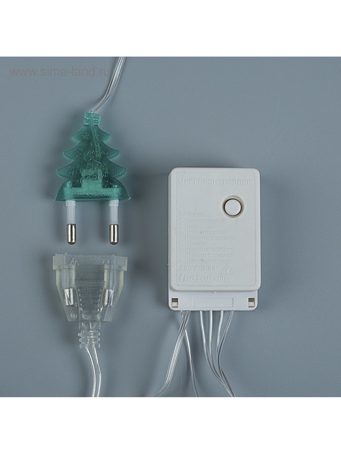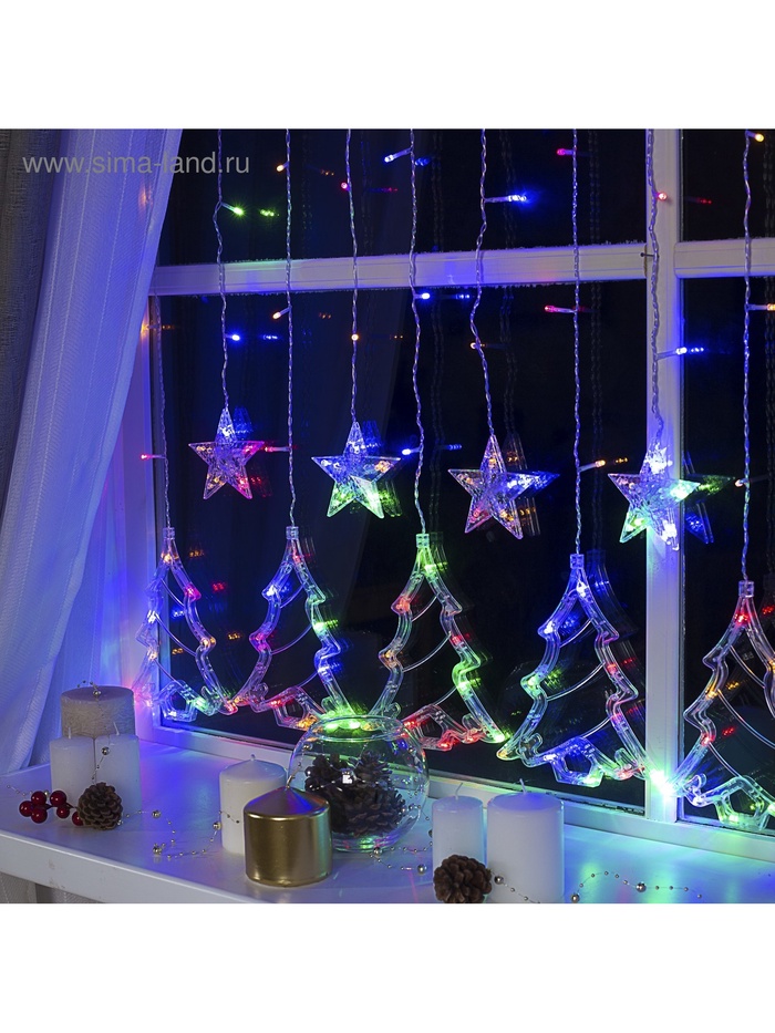 Гирлянда «Бахрома» 2.4×0.9 м с насадками «Ёлки», IP20, прозрачная нить, 138 LED, свечение мульти, 8 режимов, 220 В