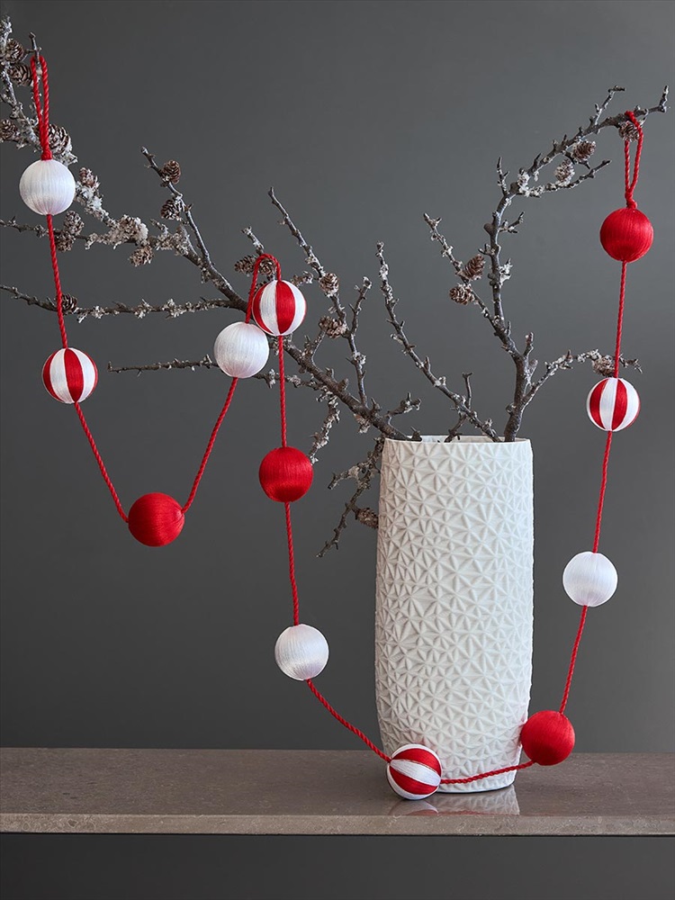 Ожерелье из разноцветных шариков закружит вашу красавицу-елку в новогоднем хороводе ярких красок. Выполненный в красно-белом цвете, этот декор напоминает виртуозных акробатов под куполом цирка, которые выполняют головокружительные пируэты, вызывая восторг и восхищение.