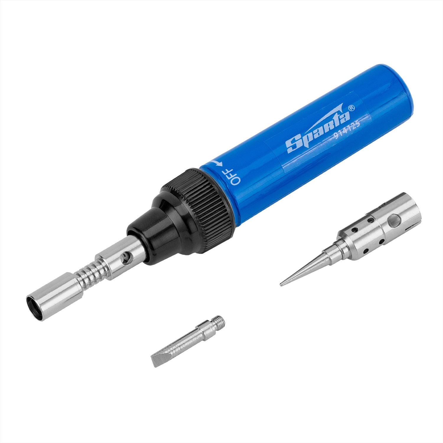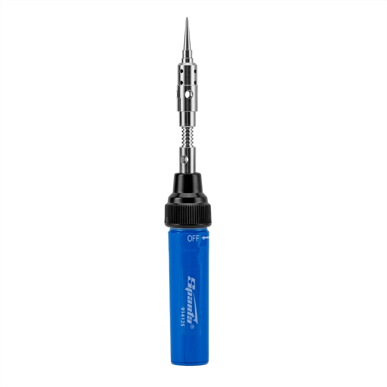 Газовая горелка Sparta 914125 типа «Карандаш», длиной 130 мм, с 2 насадками для пайки, предназначена для получения узкого ровного устойчивого пламени. Может использоваться для розжига костра или мангала, нагрева различных материалов, размораживания замков. Пламя горелки не боится ветра, поэтому ее можно использовать на улице. Горелка подойдет для бытовых целей, будет полезна туристу или радиолюбителю. Преимущества