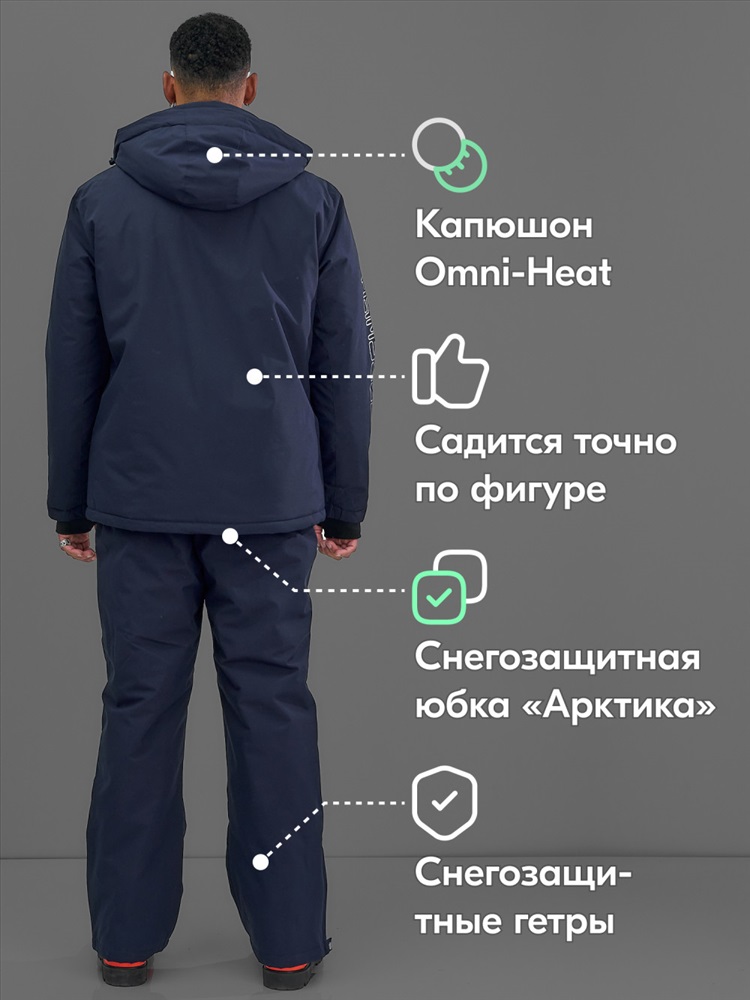 Производитель: Leifensh; Артикул: 394TS; Бренд: Leifensh; Пол: Мужской; Сезон: Зима; Страна производителя: Китай; Тип: Горнолыжные; Цвет: Темно-синий; Рост: от 155 до 195; Диапазон температур: от + 5° до -25°; Водонепроницаемость: 10 000 мм; Комплектация: Куртка, капюшон, бретели, полукомбинезон; Состав: 100% Полиэстер; Материал: Мембранные материалы, Натуральные материалы, Полиэстер, Плащевка, Тефлон, Болонь, Экологичные материалы; Материал подкладки куртки: Полиэстер/Флис/Omni-heat; Материал подкладки капюшона: Omni-heat; Материал подкладки полукомбинезона: Флис/Полиэстер; Материал наполнителя: Синтепон; Фактура материала: плотная; Утеплитель, гр: от 780 до 880 гр; Плотность утеплителя (г/кв.м): 260; Покрой: свободный; Длина подола: Средняя длина; Тип рукава: Длинный; Внутренние карманы: Есть; Тип кармана: Накладной; Форма воротника: Стойка; Фиксаторы: На капюшоне, по низу куртки, на рукавах, по низу брюк; Опции капюшона: съемный; Декоративные элементы: Вырез для пальца, Капюшон, Карманы, Светоотражающие элементы; Конструктивность элемента: Снегозащитные гетры/гамаши; Внутренние швы: Проклеены; Вид застежки: Двойная молния/Кнопки/Липучки/Крючки; Особенности модели: family look, ветрозащита, водоотталкивающий материал, гипоаллергенный материал, дышащий материал; Особенности полукомбинезона: Съемные регулируемые бретели, флисовая; Тип посадки: Средняя; Вид одежды: Горнолыжная/Свободная/Утепленная модель; Стиль: Спортивный, повседневный, вечерний, офисный/школьный; Рисунок: Надписи, Логотип, Однотонный, Светится в темноте; Коллекция: Осень-зима 2024; Тренд: уличная мода; Тип упаковки: Пакет; Цвета: темно-серый, темно-синий, белый, бежевый, синий, черный; Габариты (ДхШхВ): 56 x 45 x 12 см; Вес: 2.6 кг