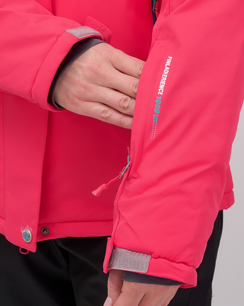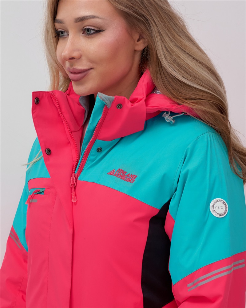 Костюм выполнен в ярких цветах: малиновом, бирюзовом, розовом, темно-синем и фиолетовом, что добавляет динамики вашему образу. Уникальный свободный покрой и съемный капюшон обеспечивают отличную свободу движений, а множество карманов, включая карман для ски-пасса, сделают ваши выходы еще более удобными.