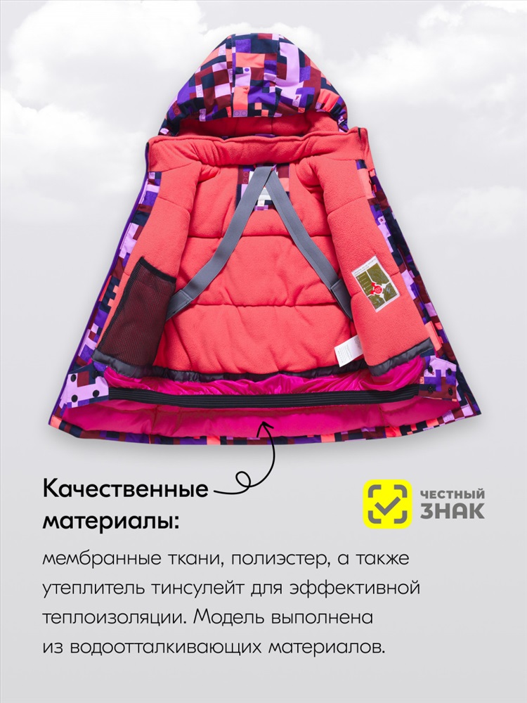 Производитель: VALIANLY; Артикул: 9436F; Бренд: VALIANLY; Пол: Девочка; Сезон: Зима; Страна производителя: Китай; Тип: Горнолыжные; Цвет: Фиолетовый; Рост: от 146 до 176; Диапазон температур: °С от + 5° до - 25°; Водонепроницаемость: 10 000 мм; Состав: 100% Полиэстер; Материал: Мембранные материалы, Полиэстер, Плащевка, Тефлон, Экологичные материалы; Материал подкладки куртки: Полиэстер/С начесом; Материал подкладки капюшона: Полиэстер/С начесом; Материал подкладки полукомбинезона: Полиэстер/С начесом; Материал подкладки воротника: Полиэстер/С начесом; Материал наполнителя: Тинсулейт; Фактура материала: плотная; Утеплитель, гр: от 440 до 660 гр; Плотность утеплителя (г/кв.м): 250; Покрой: свободный; Длина подола: Средняя длина; Тип рукава: Длинный; Внутренние карманы: Есть; Тип кармана: Прорезной/Молния; Форма воротника: стояче-отложной; Фиксаторы: На рукавах, в поясе; Опции капюшона: Съемный на кнопках; Декоративные элементы: Вырез для пальца, Капюшон, Пояс/ремень, Светоотражающие элементы; Конструктивность элемента: Снегозащитные гетры/гамаши; Внутренние швы: Проклеены; Вид застежки: Молния/Кнопки/Клапан; Особенности модели: family look, ветрозащита, водоотталкивающий материал, гипоаллергенный материал, дышащий материал, потайной карман; Тип посадки: Средняя; Вид одежды: Горнолыжная/Свободная/Утепленная модель; Рисунок: Надписи, Логотип, Однотонный, Светится в темноте; Коллекция: Осень-зима 2024; Тренд: бэби-долл; Тип упаковки: Пакет; Цвет комплекта: фиолетовый, бордовый; Габариты (ДхШхВ): 50 x 40 x 17 см; Вес: 2.2 кг