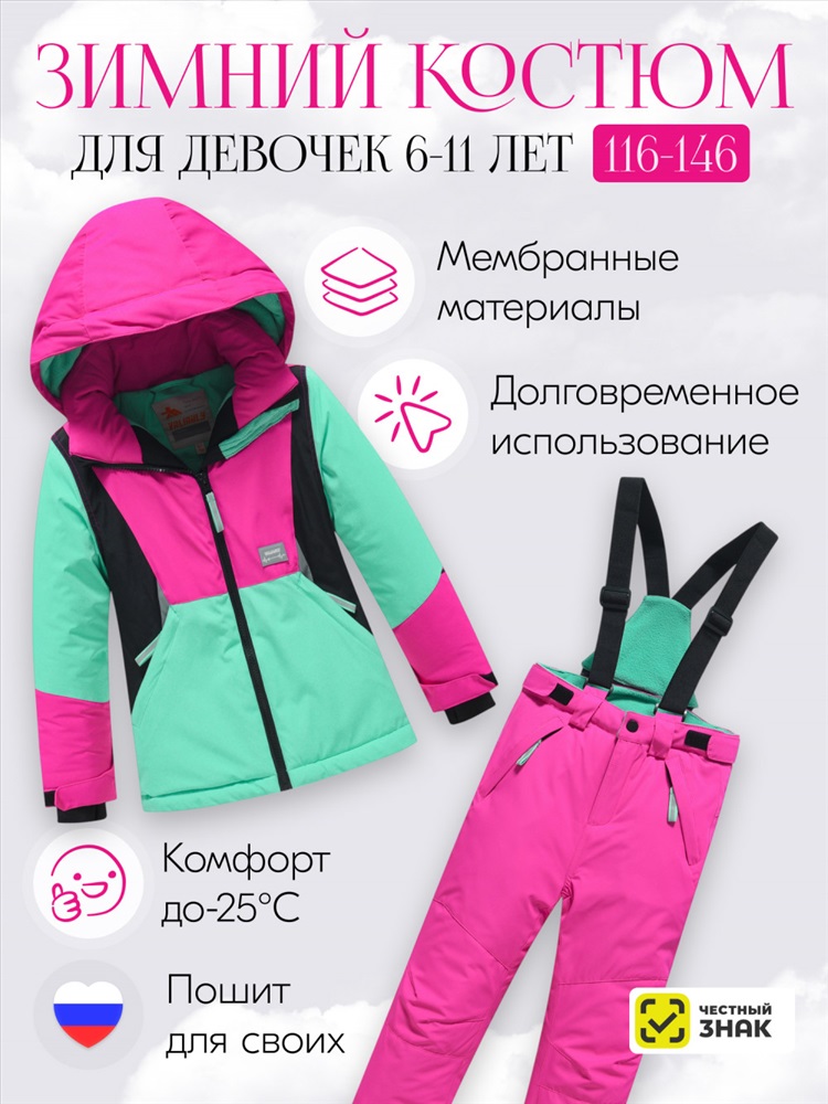 Этот костюм станет отличным выбором для юных спортсменок, обеспечивая как стильный внешний вид, так и комфорт во время активного отдыха! Уверены, вы по достоинству оцените высокое качество нашей продукции! Пусть зима станет временем незабываемых приключений!