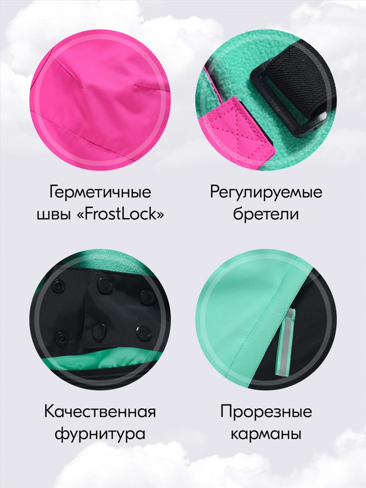 Брюки также продуманы до мелочей: съемные регулируемые бретели обеспечивают надежную посадку, а утепленная спинка гарантирует дополнительный комфорт.