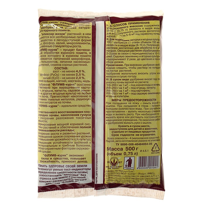 Гранулы для восстановления плодородия почвы "Флумб куряк", 500 г