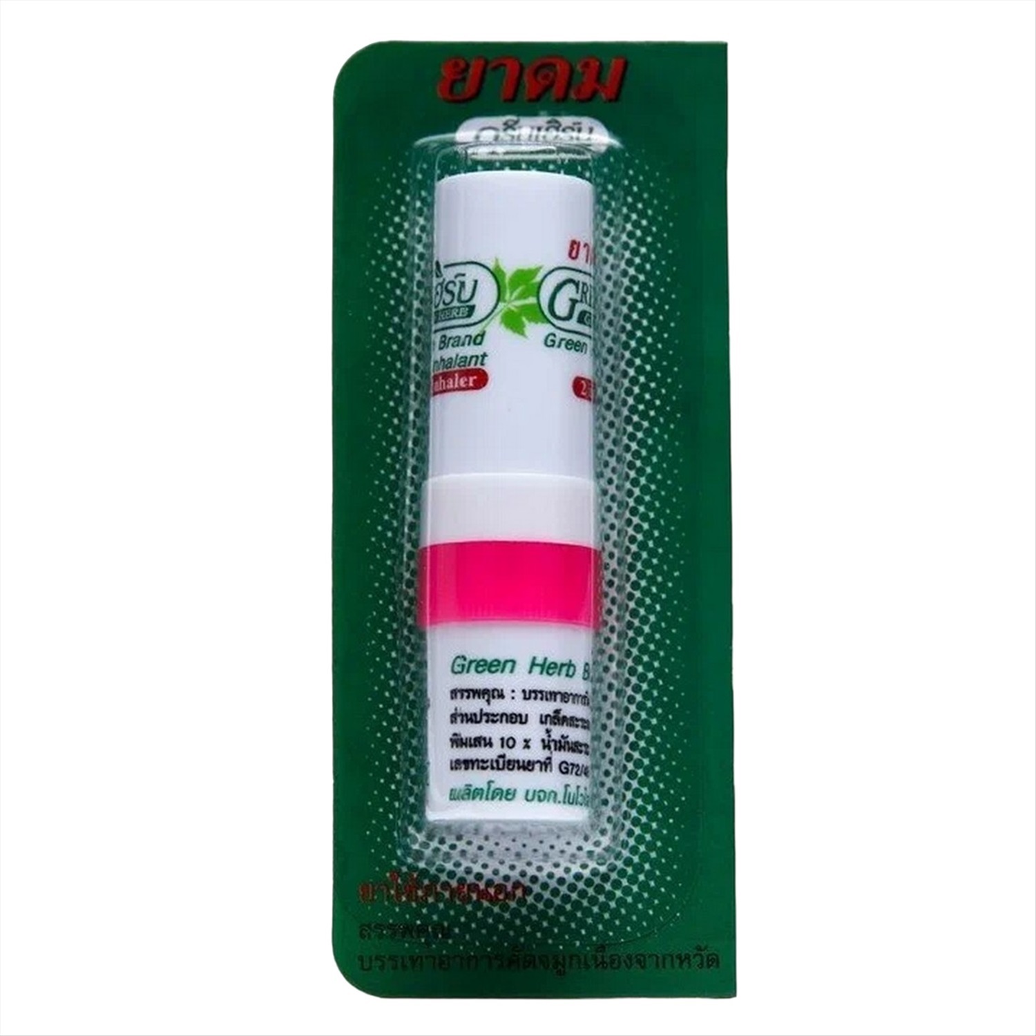 Ингалятор-карандаш от тайского бренда Green Herb (Грин Херб) с маслами ментола, эвкалипта и камфоры от насморка, заложенности носа и головной боли.