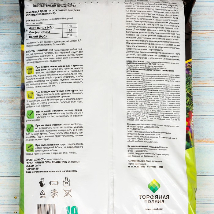 Производитель: Торфяная поляна; Габариты: 40 x 30 x 3,5; Доставка: Платная; Страна: Россия; В боксе: 1 шт; Состав: См. на упаковке; Материалы: см. на упаковке; Фасовка: по 1 шт; Индивидуальная упаковка: Пакет; Сертификат: Не подлежит сертификации; Вид выращиваемой культуры: Универсальный; Вес/Объём: 10 л Грунт цветочный является идеальным выбором для садоводов, желающих обеспечить своим растениям наилучшие условия для роста и развития. Он подходит для использования при выращивании самых разнообразных видов цветов, позволяя им получать все необходимые питательные вещества из грунта. Проращивание семян также будет более успешным благодаря этому продукту, поскольку он обеспечивает оптимальный уровень влажности и питательных веществ для быстрого и здорового прорастания.Пикировка и укоренение растений также станут более простыми и эффективными процедурами благодаря этому питательному торфяному грунту. Он обеспечивает хорошую аэрацию и влагоемкость, что помогает корням растений развиваться более эффективно.Кроме того, этот грунт может использоваться в качестве мульчирующего слоя или подсыпки на поверхности почвы. Это помогает сохранить влагу в почве, предотвращает рост сорняков и улучшает структуру почвы, делая ее более рыхлой и воздухопроницаемой. В результате, использование грунта способствует здоровому росту и развитию растений, а также улучшению общего состояния почвы в саду.